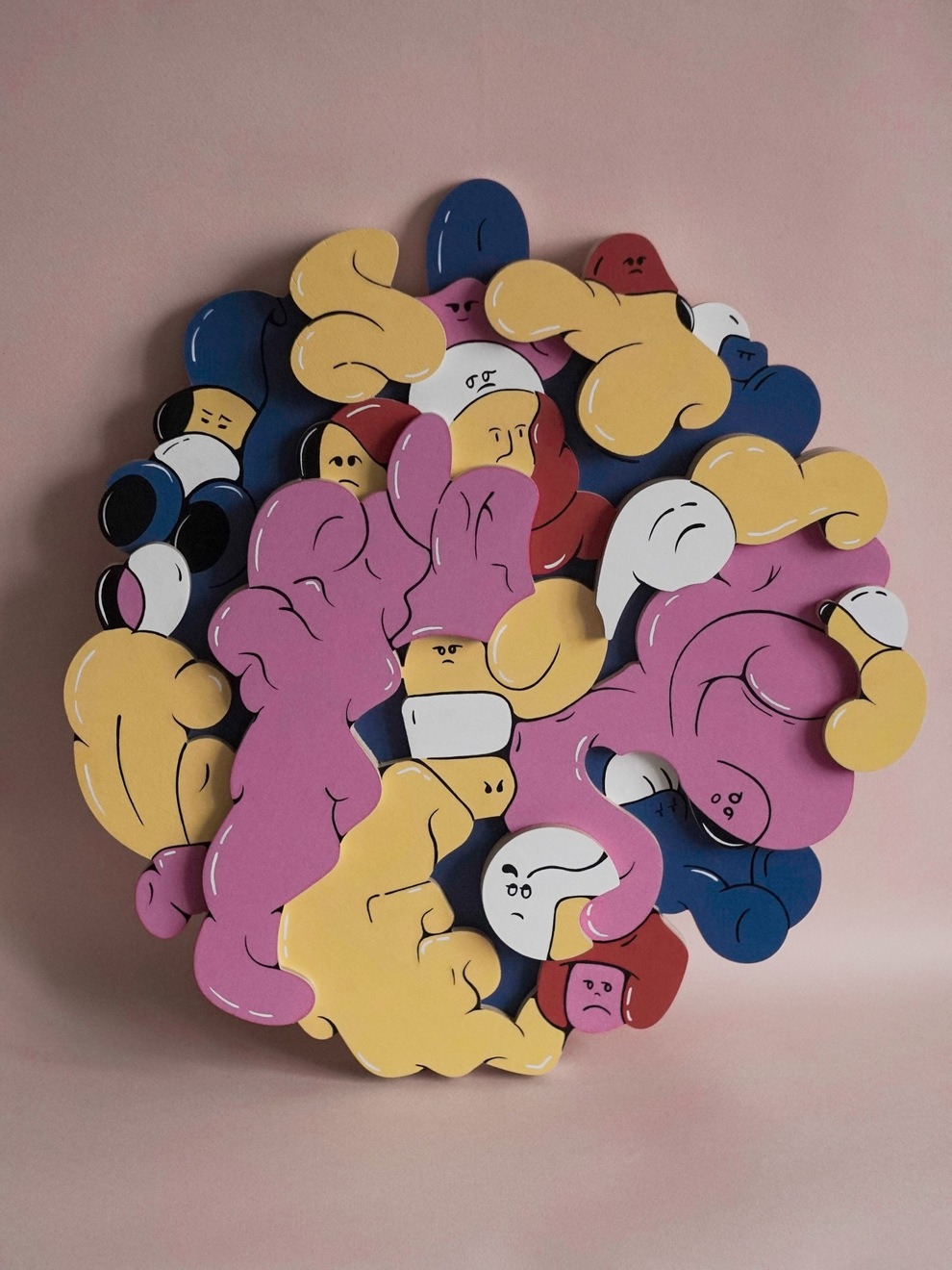 The project translates wavy, minimalist characters and abstract forms into physical objects and decor items, keeping a clean, design‑driven aesthetic that sits between illustration, product design and art toy culture.