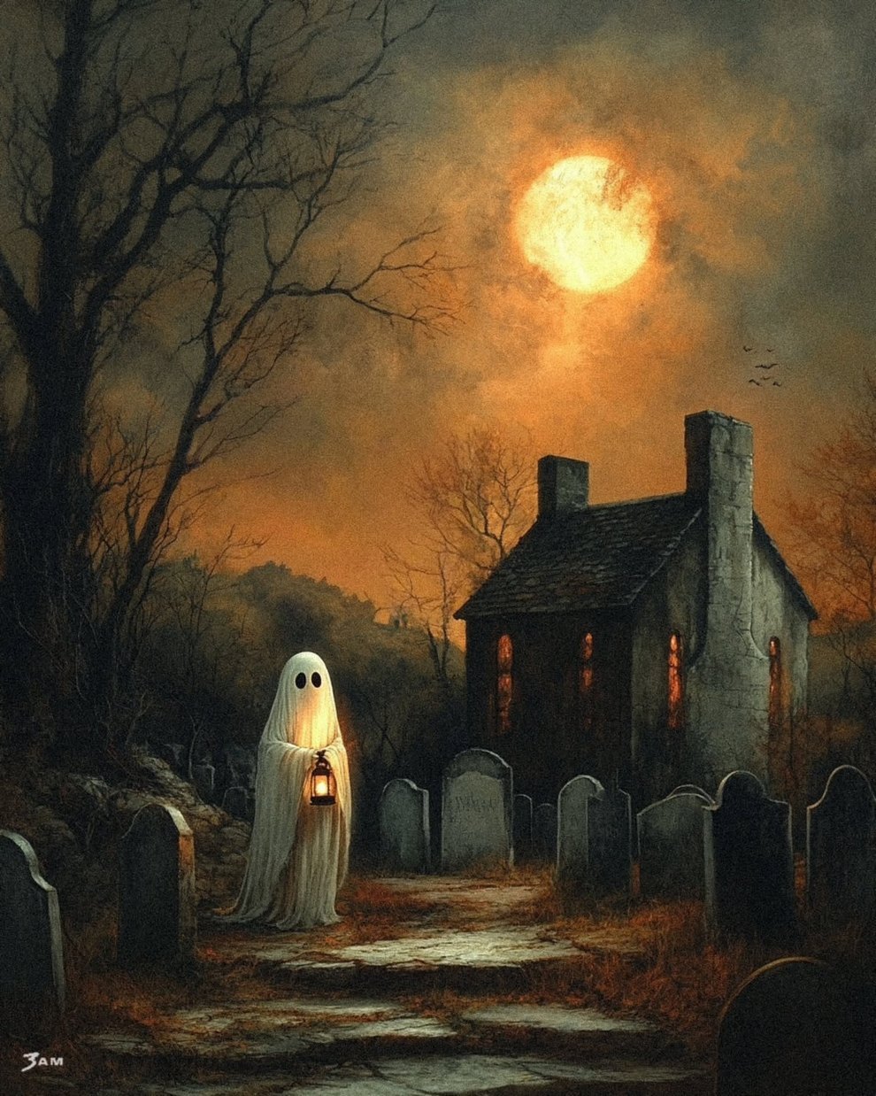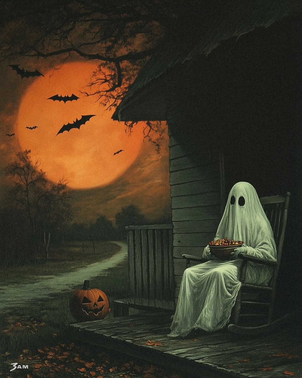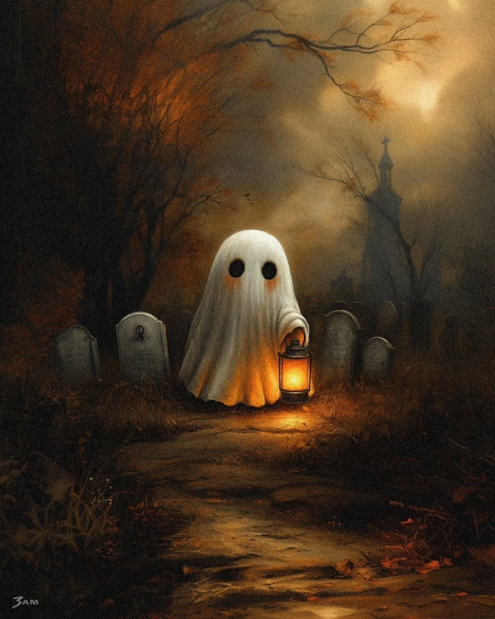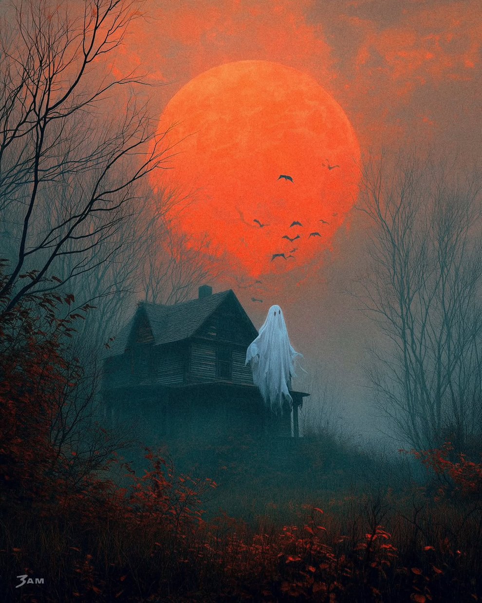 3am Horrors is a ghost‑themed art Instagram account focused on cozy, atmospheric spooky scenes created with MidJourney and Photoshop.