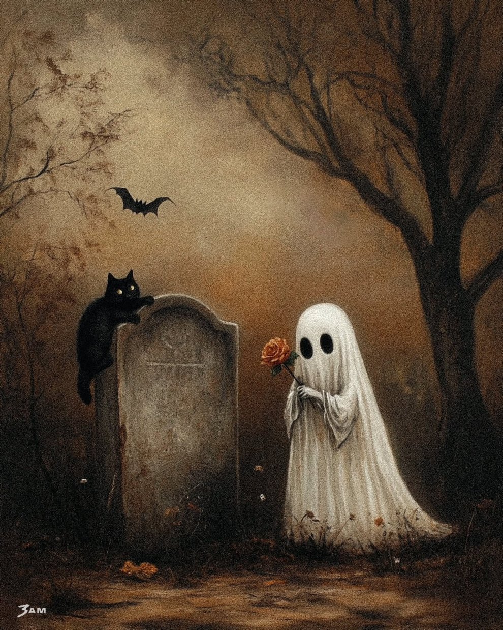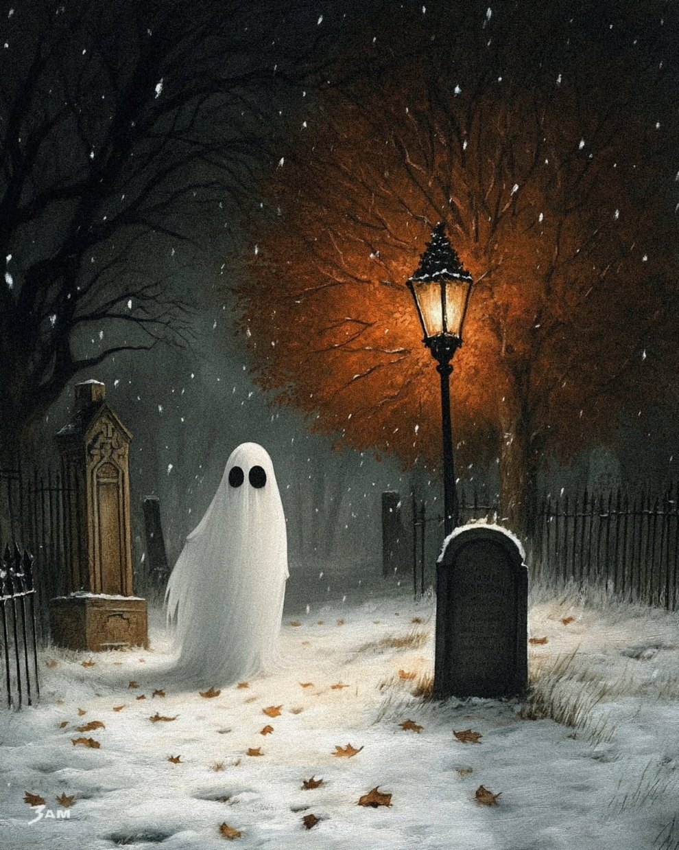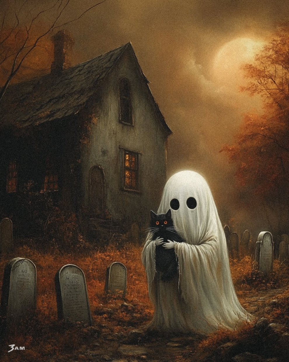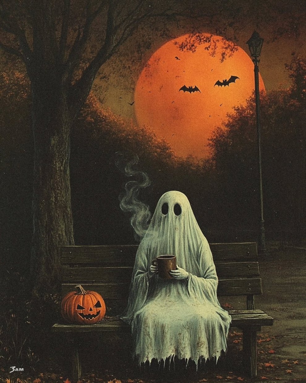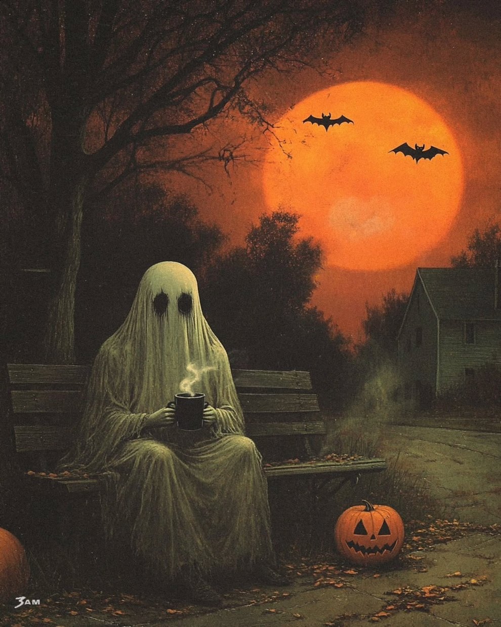3am Horrors is a ghost‑themed art Instagram account focused on cozy, atmospheric spooky scenes created with MidJourney and Photoshop.
