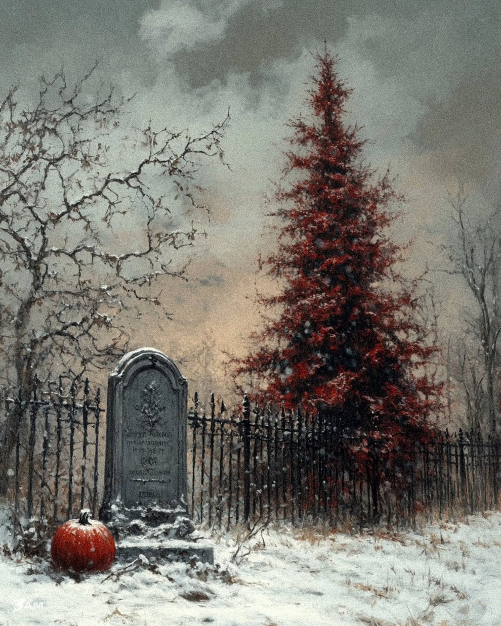 and the feed is full of soft, foggy ghosts in cemeteries, porches, autumn streets, and gothic Christmas settings.