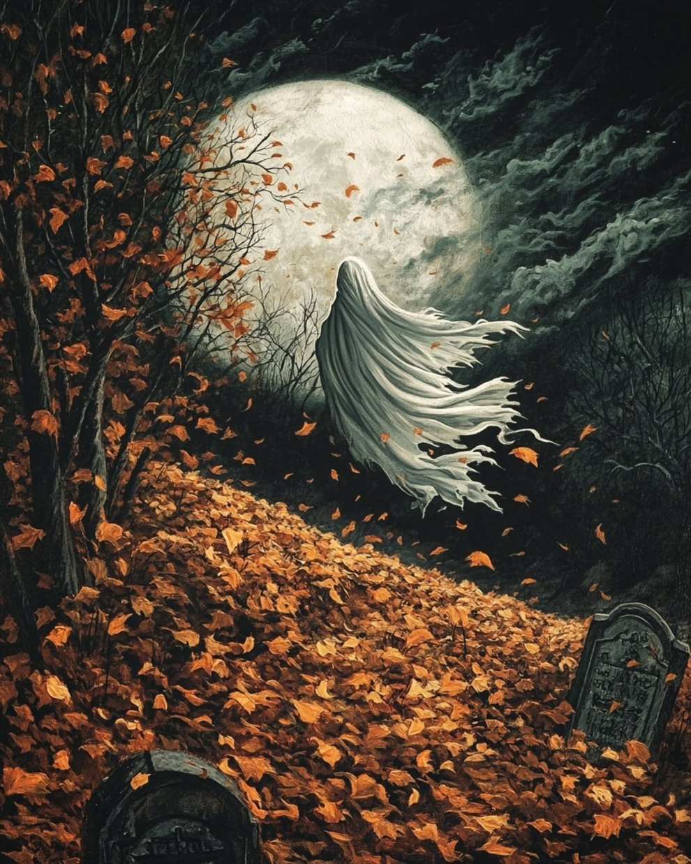 Stunning Cozy Ghost Art By 3am Horrors, Turning Cemeteries, Porches And Autumn Streets Into Soft, Haunted Dreamscapes