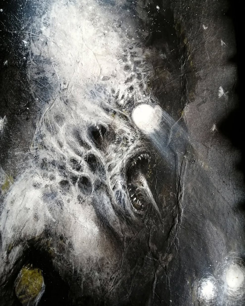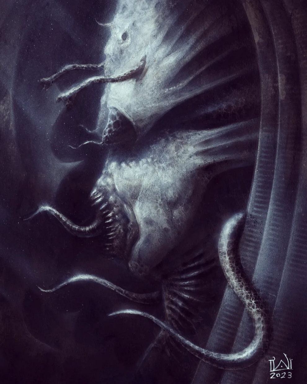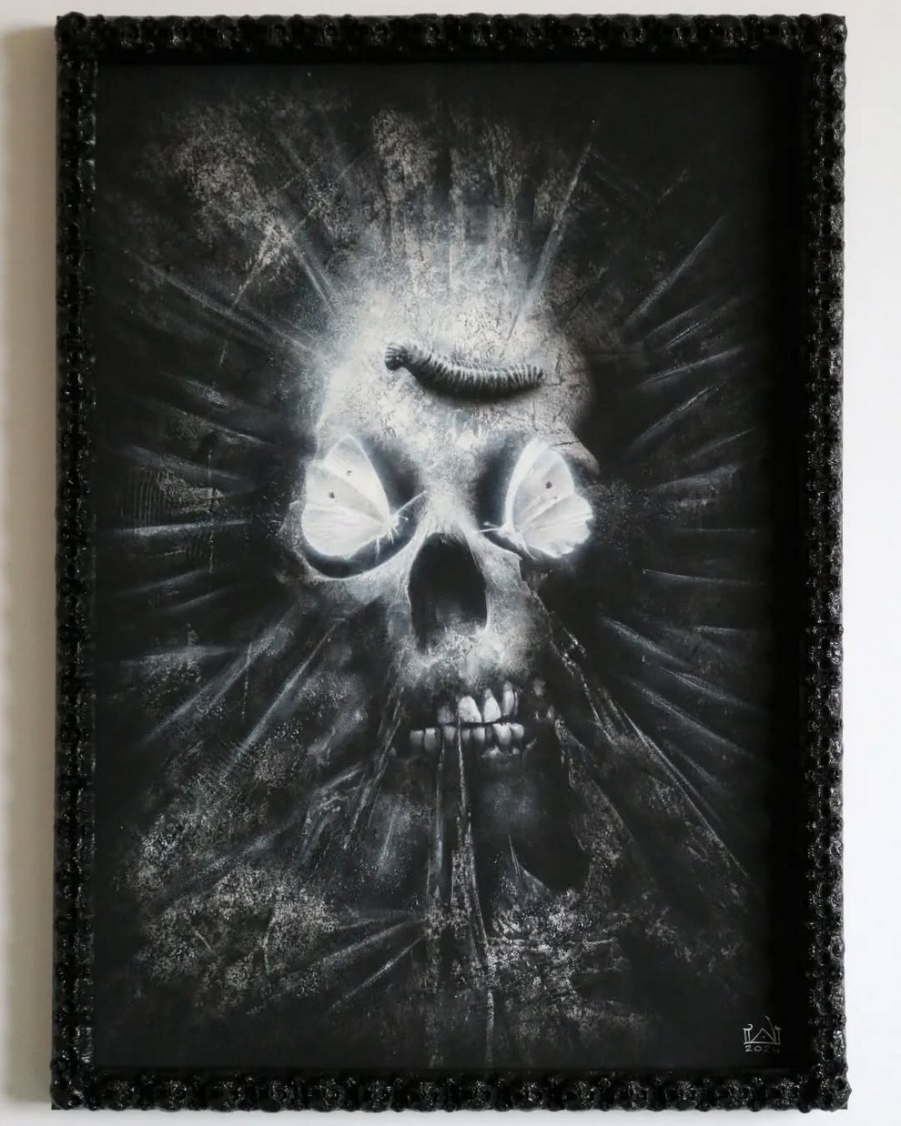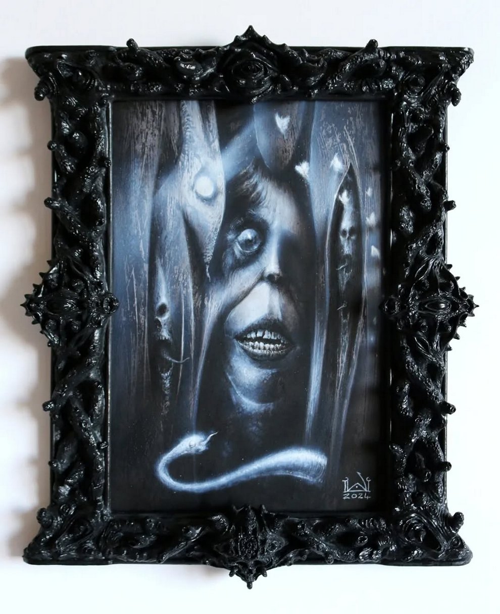 Born in 1979 and raised on 1980s cartoons, movies and hand‑painted poster art, he cites Clive Barker, Graham Humphreys, H.R. Giger and Drew Struzan as major influences feeding into his “melting pot” of nightmaresque, cinematic imagery.