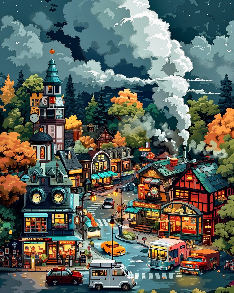 Stunning Digital Storytelling Landscapes By Prismofpixels, Turning Quiet Streets And Town Squares Into Cinematic Moments Of Color And Light