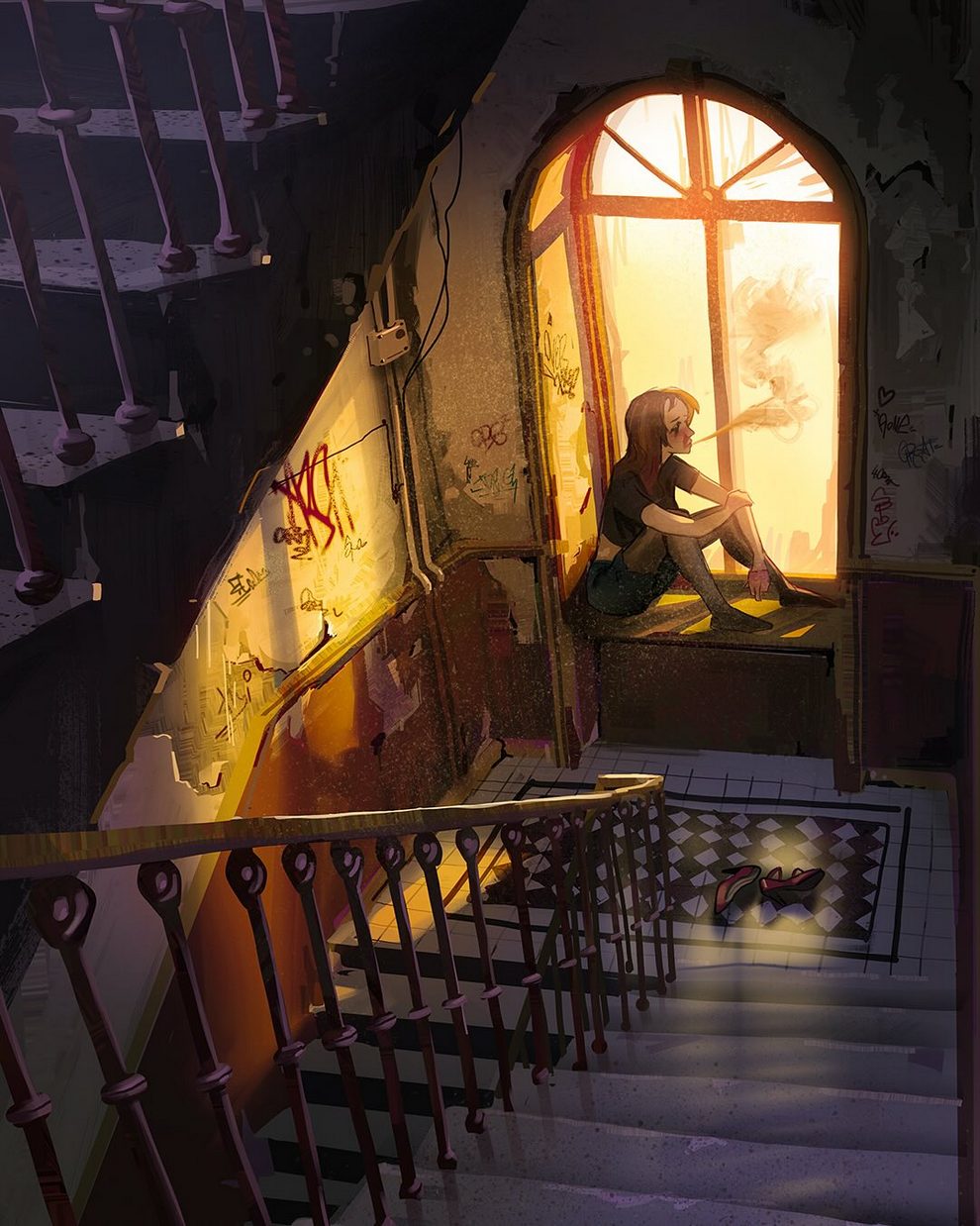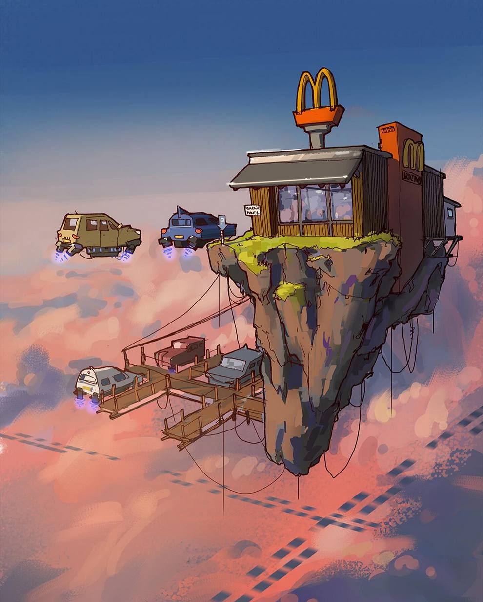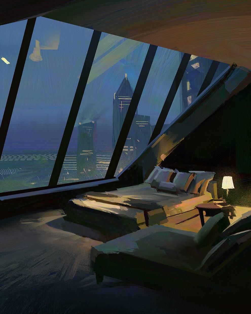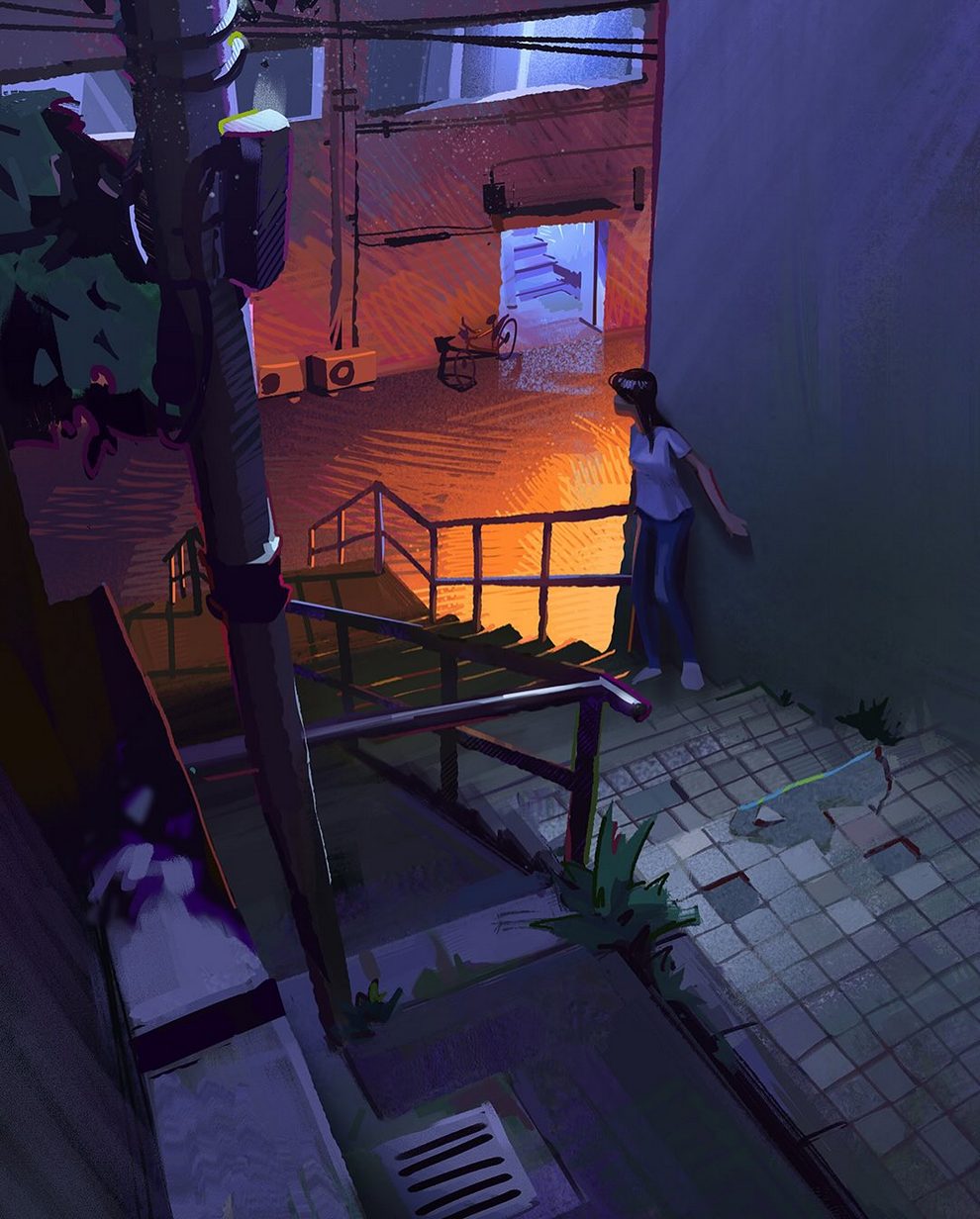He focuses on moody lighting, atmospheric depth and color‑rich skies, and sells his pieces as high‑resolution desktop wallpapers and wallpaper packs via Gumroad, positioning his work between concept art, illustration and escapist worldbuilding.