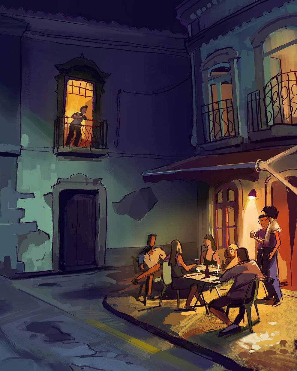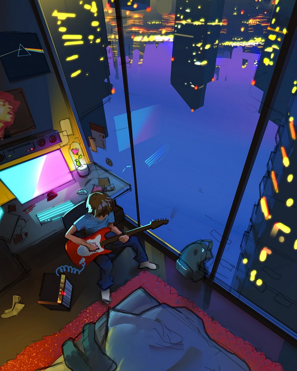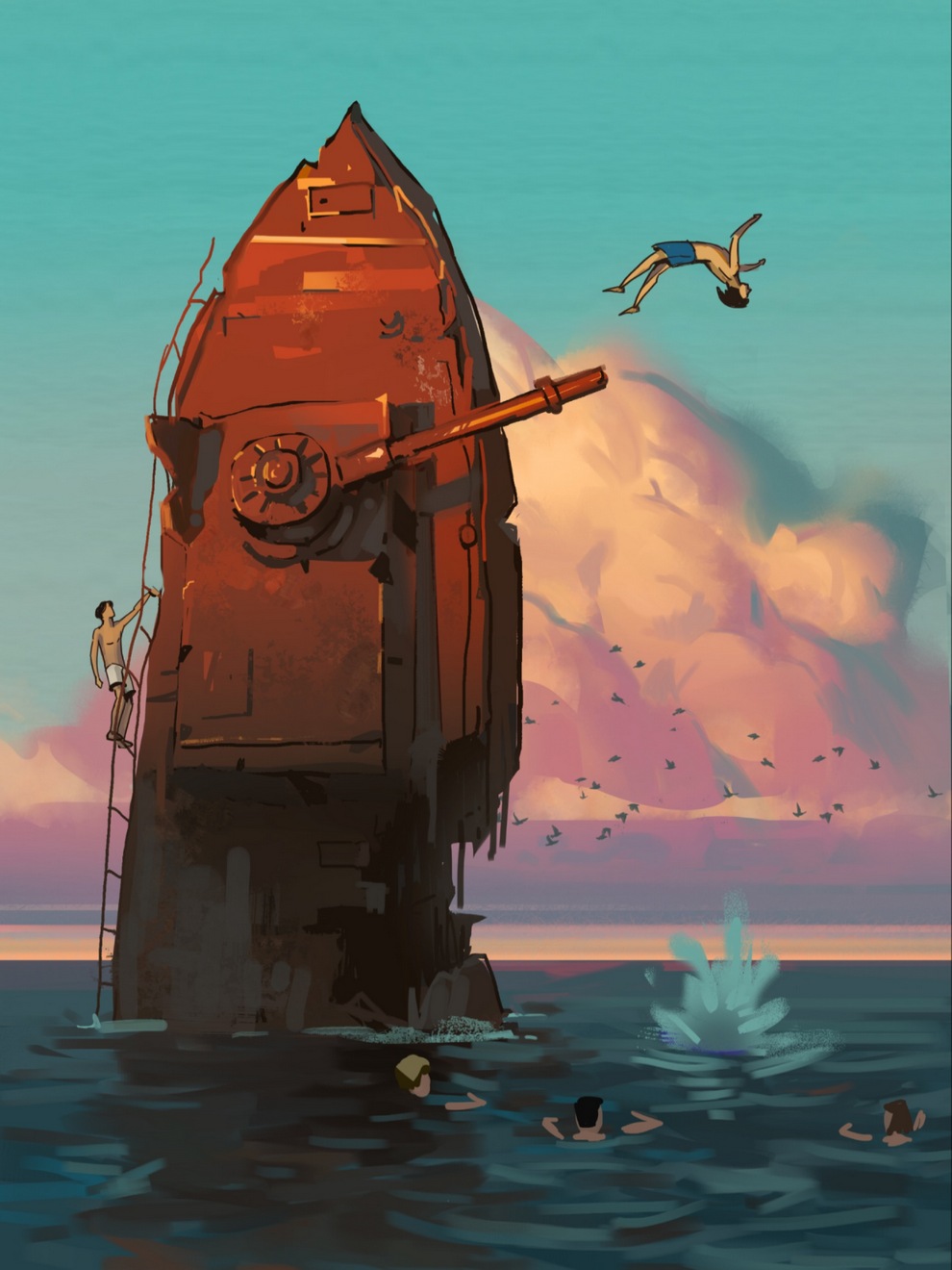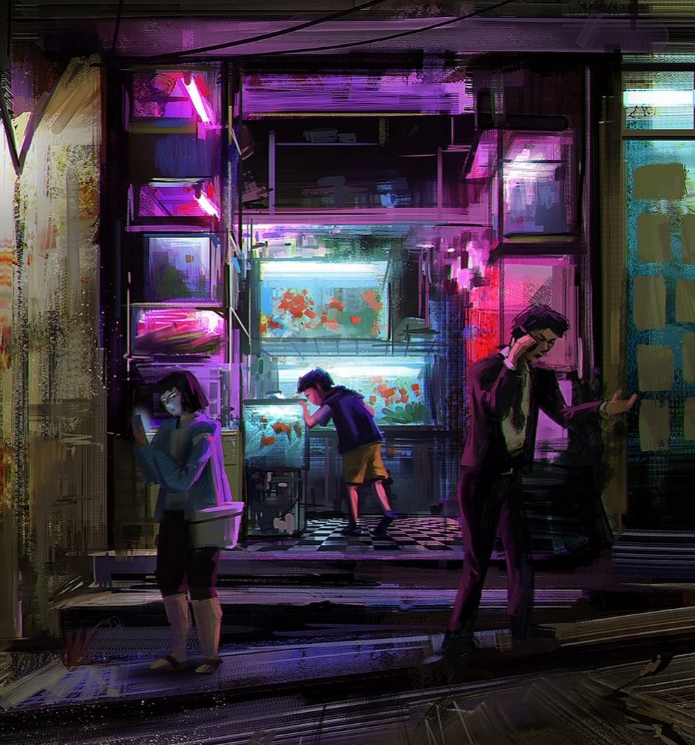 He focuses on moody lighting, atmospheric depth and color‑rich skies, and sells his pieces as high‑resolution desktop wallpapers and wallpaper packs via Gumroad, positioning his work between concept art, illustration and escapist worldbuilding.