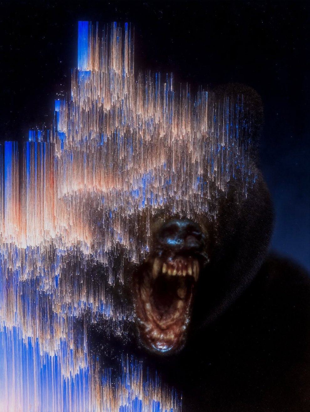 Describing his work as “conversations between human and machine,” his portfolio bridges minimalism, sci‑fi aesthetics, and vibrant energy. He has built a following of over 88K on Instagram by balancing refined, melancholic architectural spaces with explosive, neon-drenched animal and character portraits.