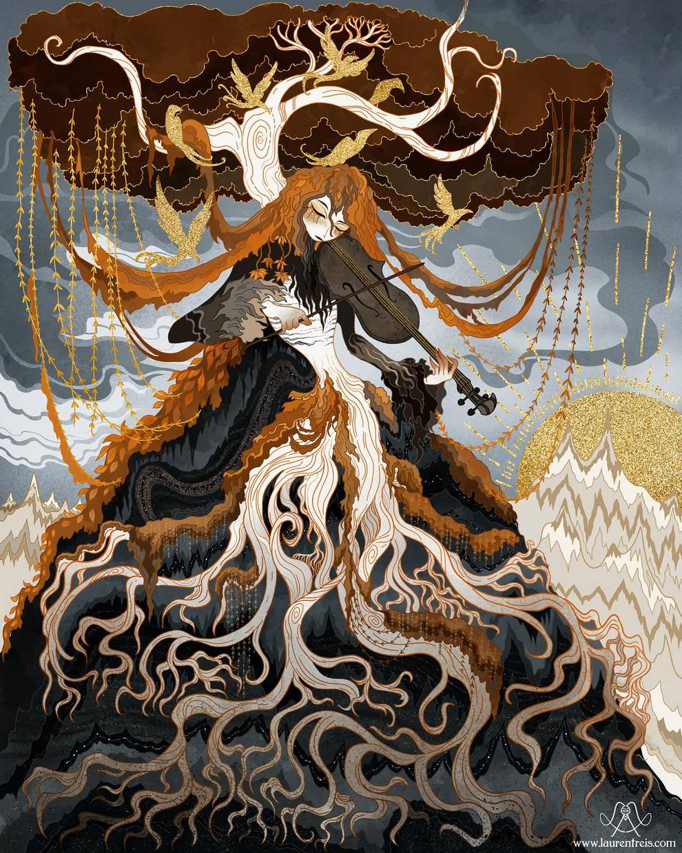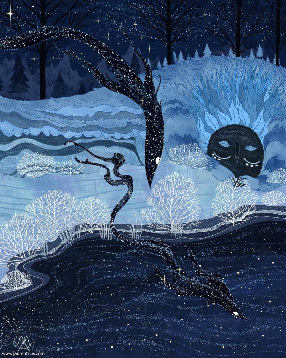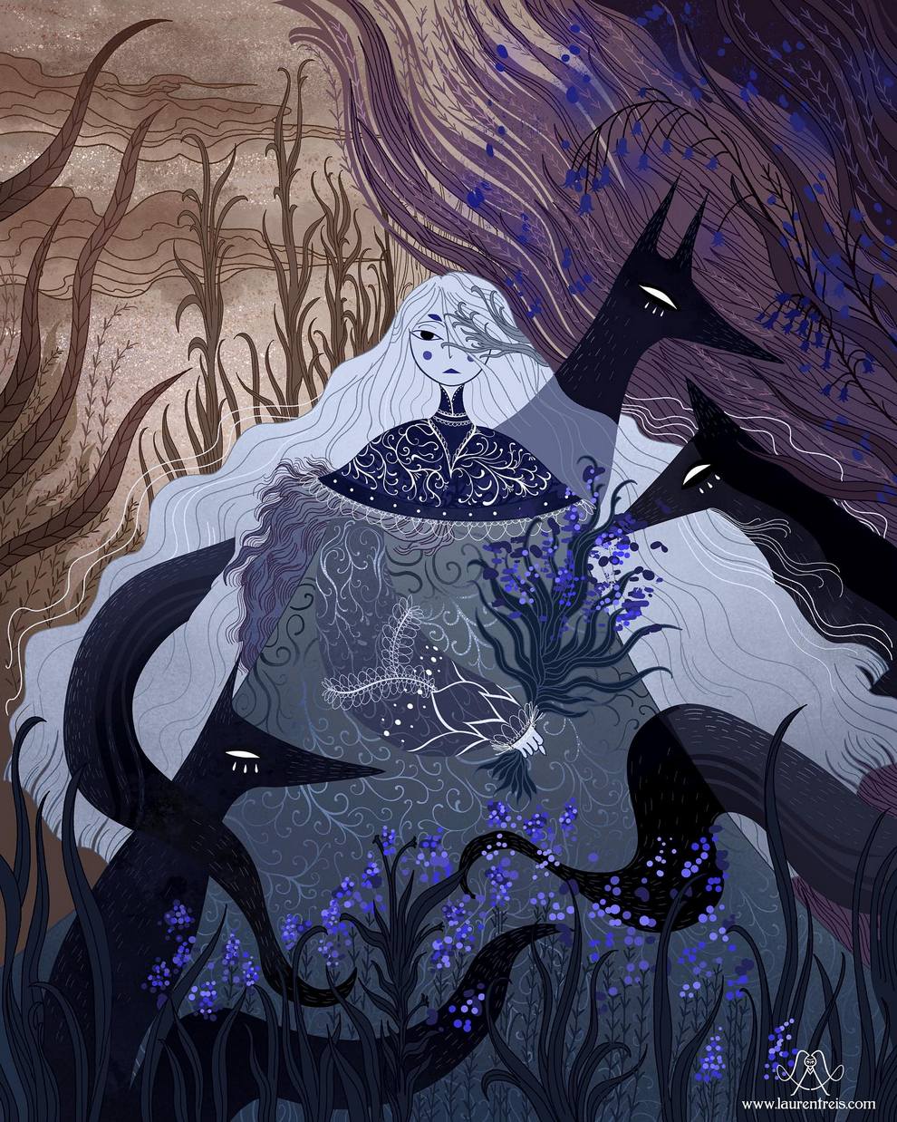 Amazing Witchy Forests, Nordic Lights And Pagan Goddesses Painted Like Frames From A 2D Animated Movie