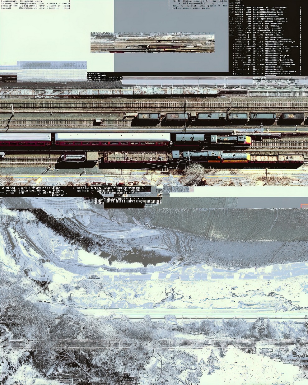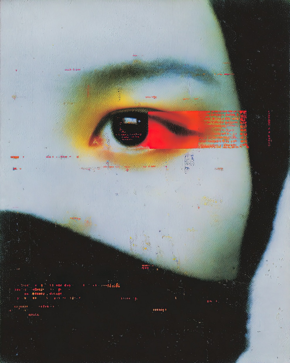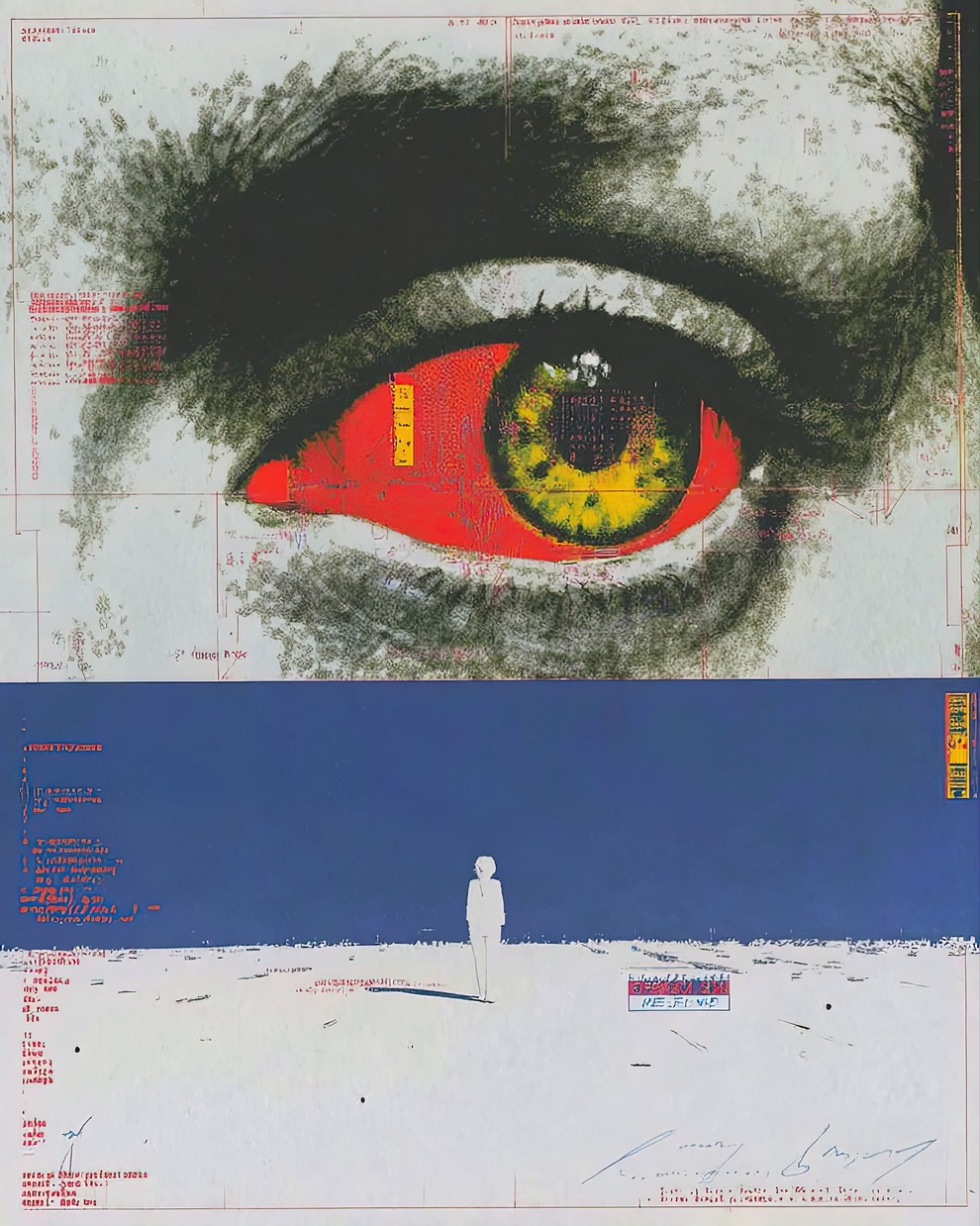 Elfilter’s aesthetic is heavily rooted in glitch art, surrealism, and abstract digital design. He frequently creates what he refers to as “experimental posters,” blending bold, vibrant textures with AI-assisted elements to craft striking, emotionally resonant visual compositions. His process combines traditional graphic design techniques with the unpredictability of generative algorithms, resulting in uniquely complex digital canvases that push the boundaries of modern digital collage.