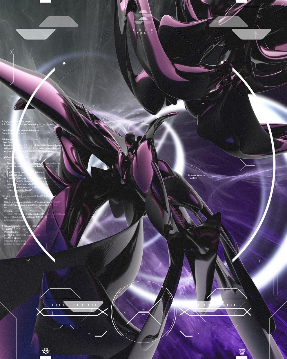 The collective’s visual language is heavily rooted in cybercore, generative art, and digital surrealism. Their portfolio features a mix of hypnotic visual loops, CD designs, fractal art, and complex shader programming (using tools like GLSL). Thematically, their work often explores dystopian and cyberpunk concepts, such as societal control, digital glitches, and “the matrix,” presenting these ideas through striking, code-driven aesthetics.