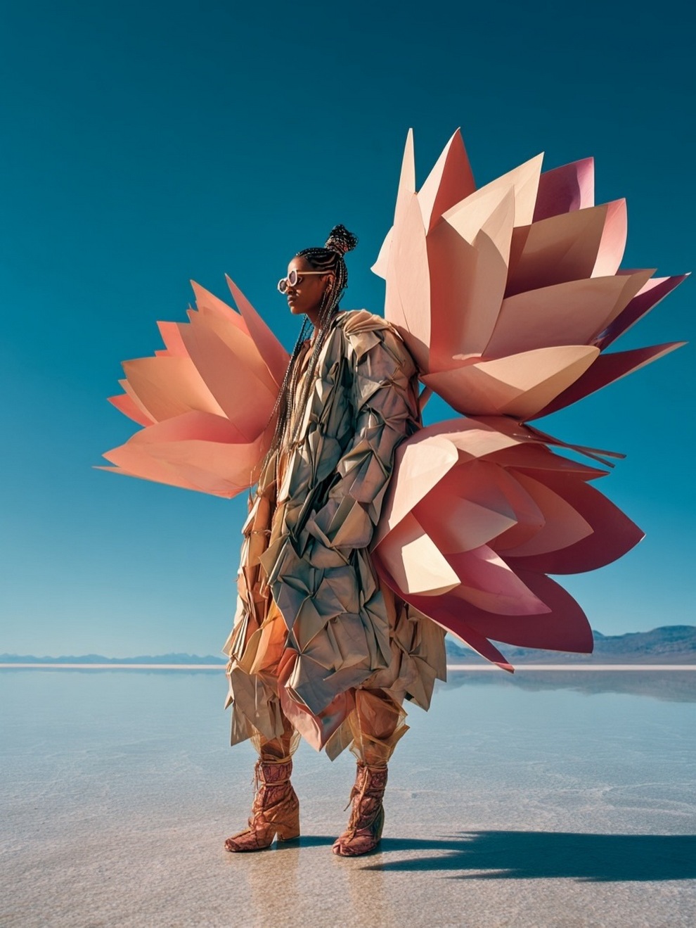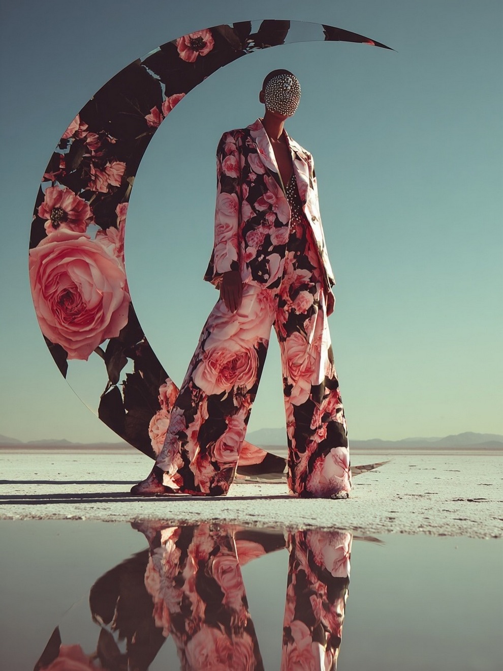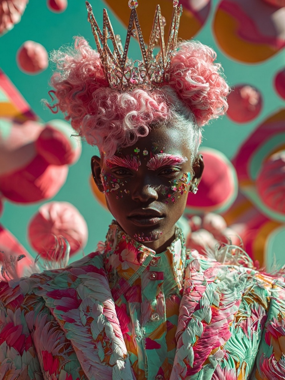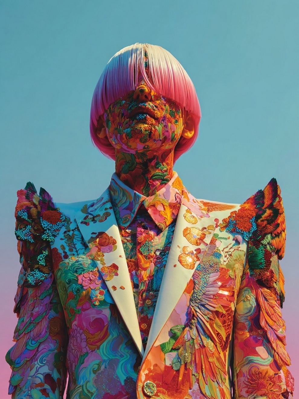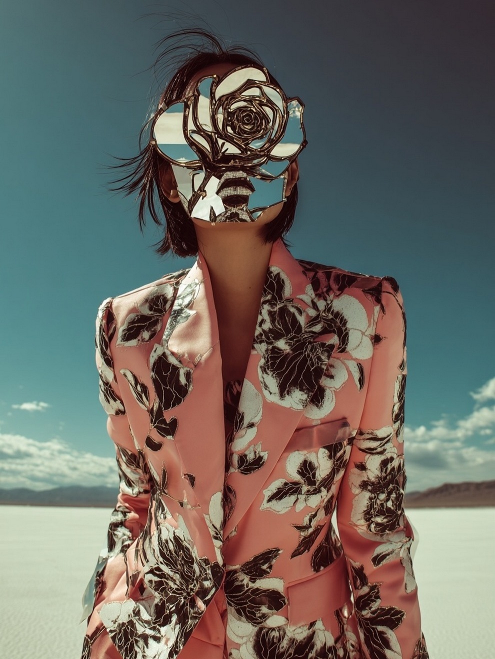 Paras’s artwork exists at the intersection of fashion, nature, and fantasy. She is best known for her “floral guardians” and surreal couture, where she drapes digital models in imagined garments made of cascading petals, metallic textures, or even mushroom frills. Her pieces often draw inspiration from the Mediterranean mood of her home in Cyprus, blending organic botanical shapes with avant-garde fashion concepts that deliberately defy the physical limitations of traditional photography.