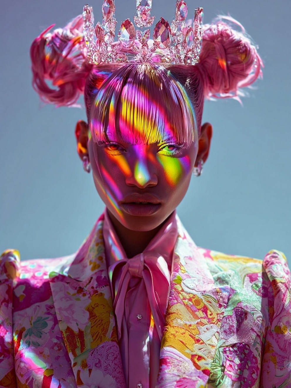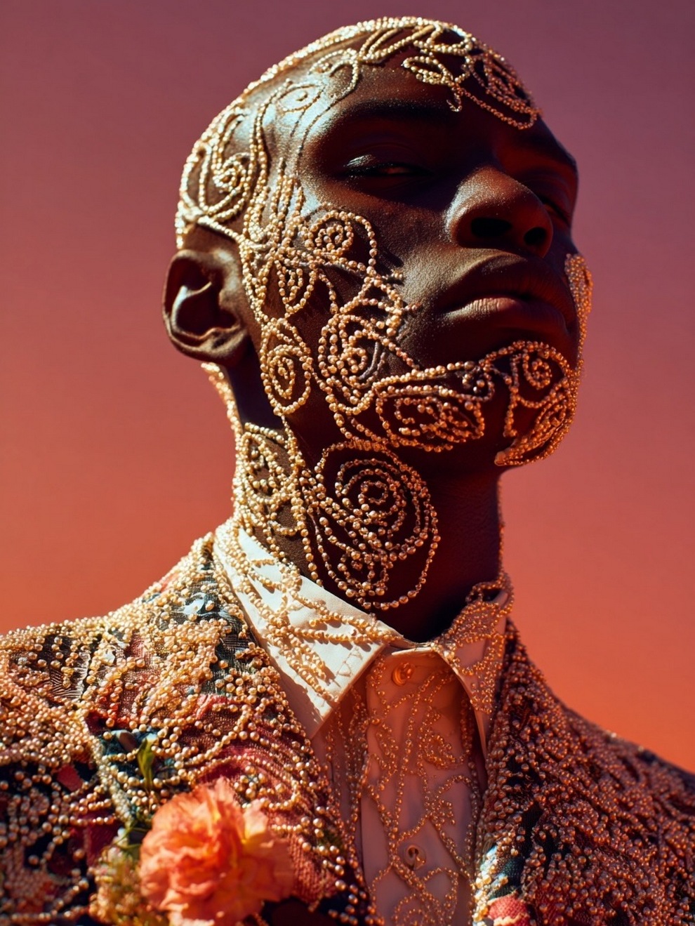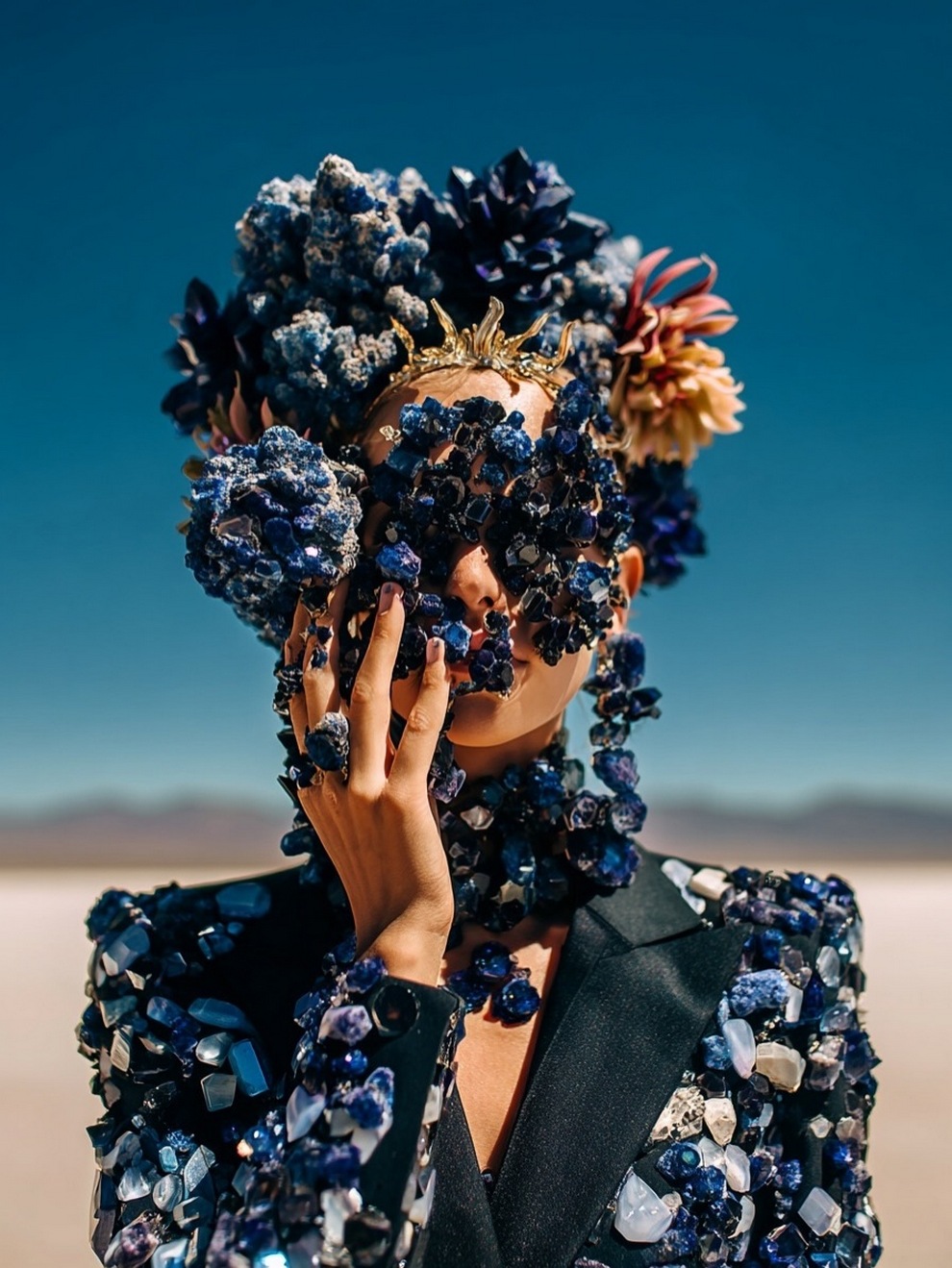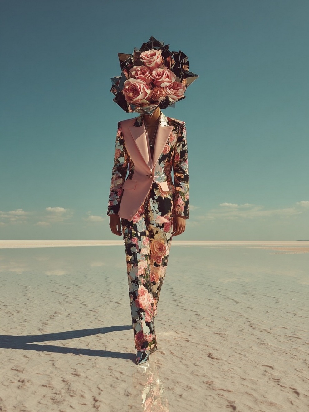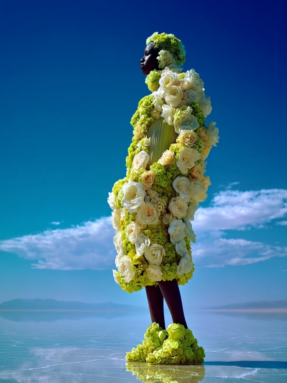 Paras’s artwork exists at the intersection of fashion, nature, and fantasy. She is best known for her “floral guardians” and surreal couture, where she drapes digital models in imagined garments made of cascading petals, metallic textures, or even mushroom frills. Her pieces often draw inspiration from the Mediterranean mood of her home in Cyprus, blending organic botanical shapes with avant-garde fashion concepts that deliberately defy the physical limitations of traditional photography.