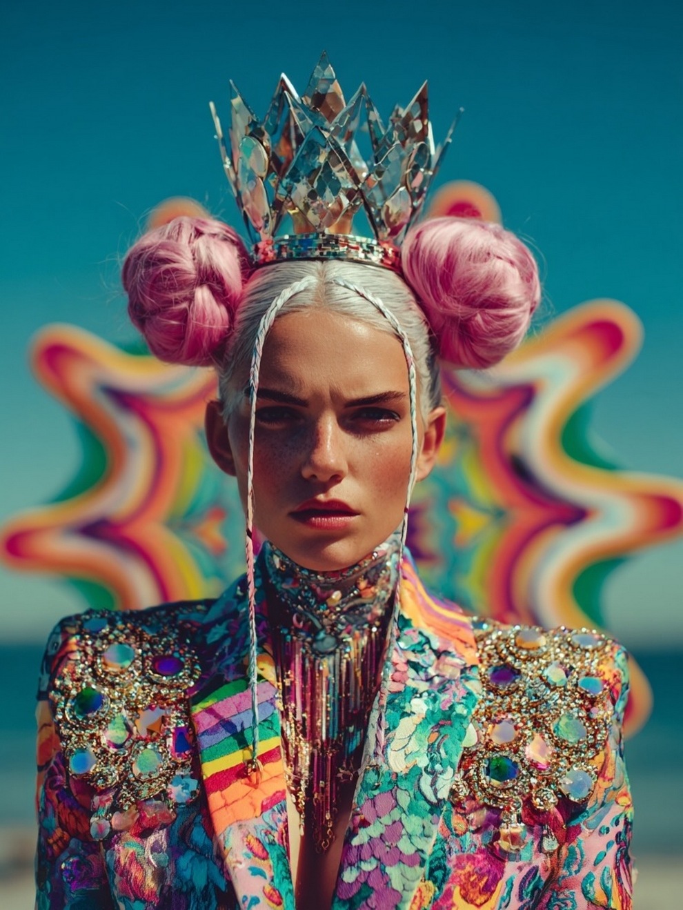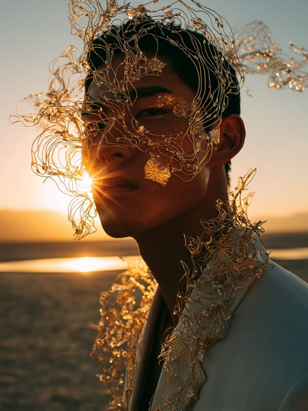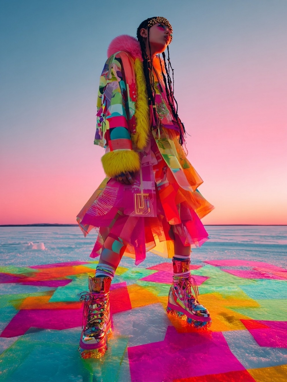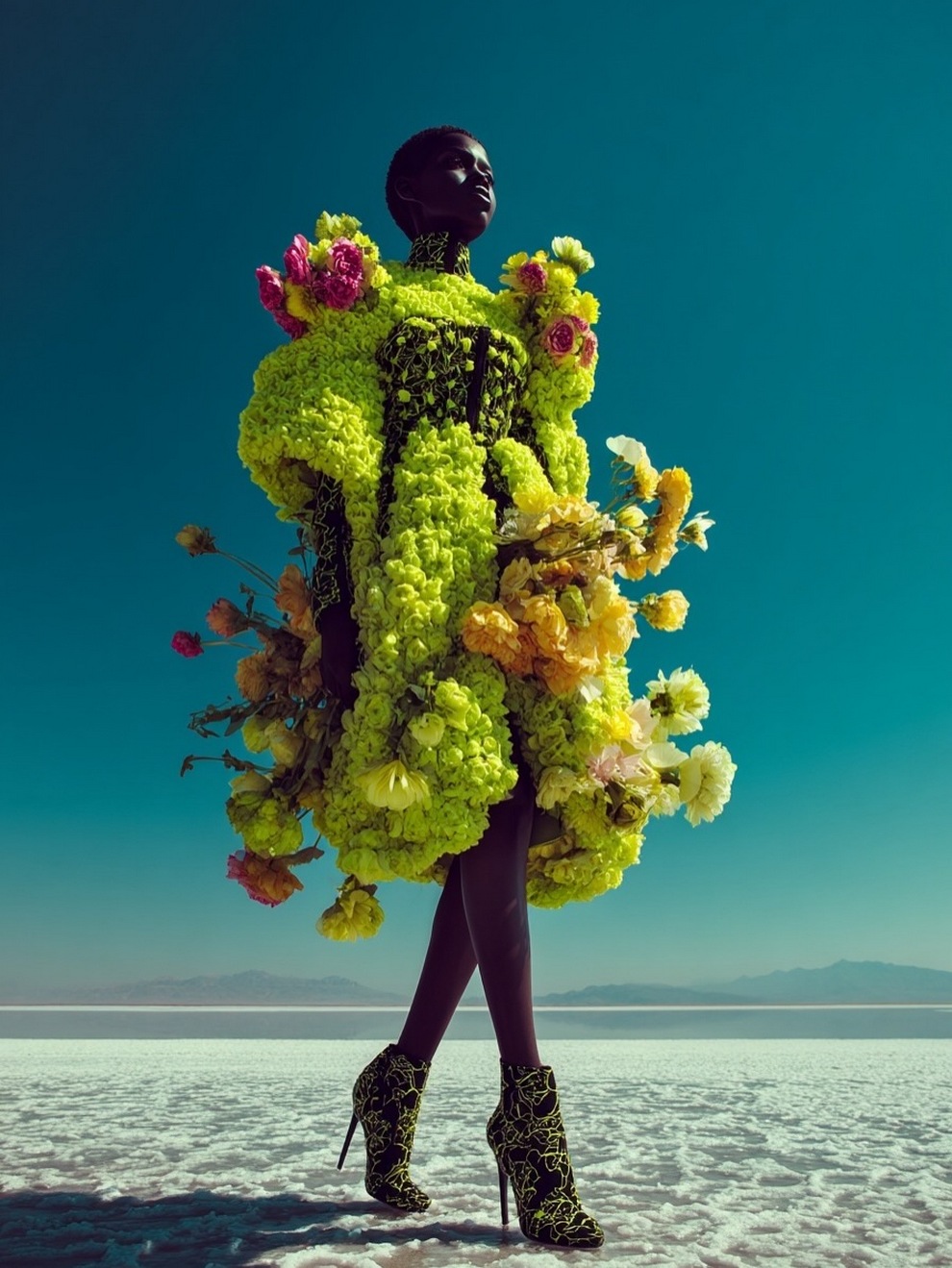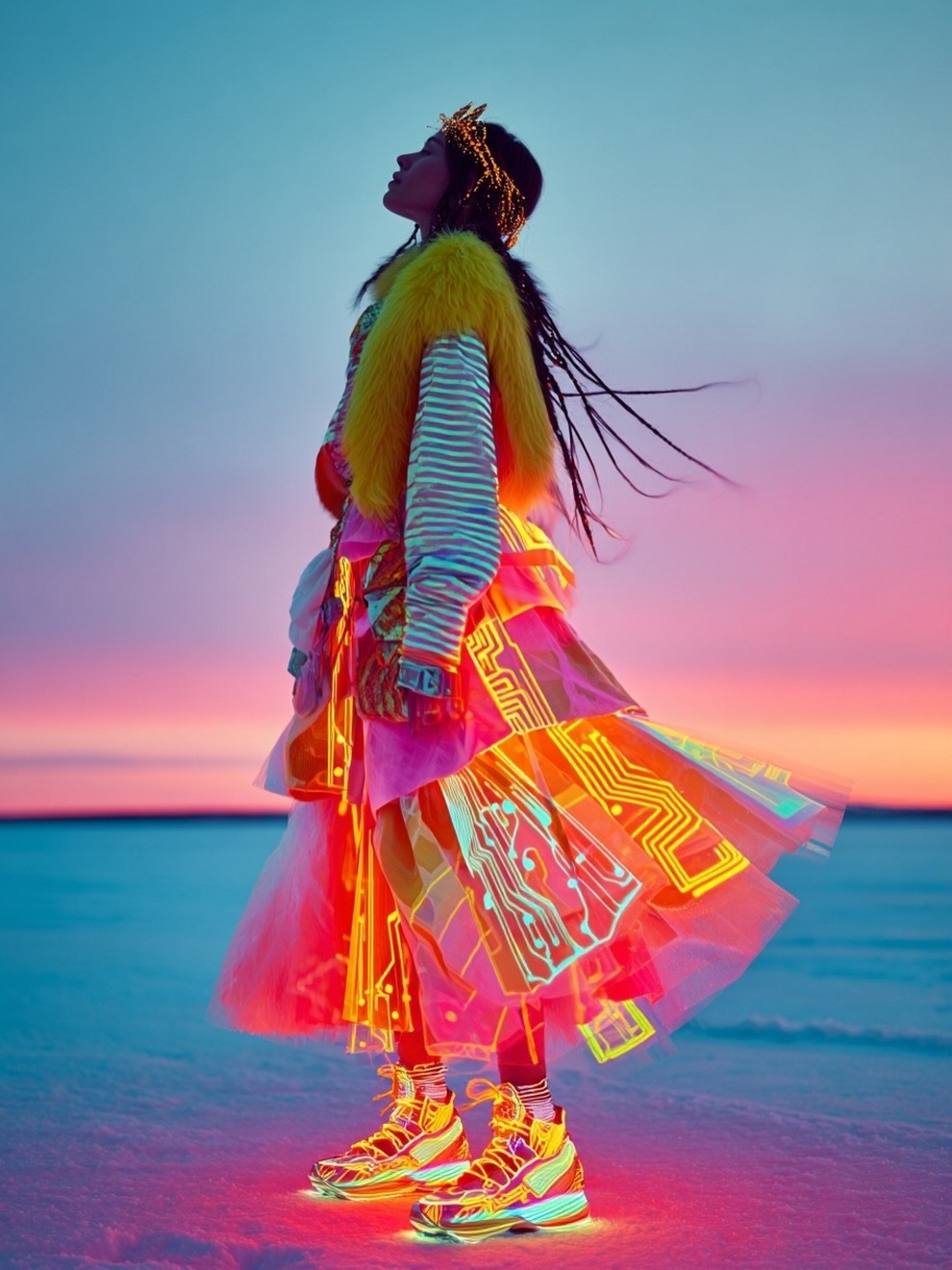 Paras’s artwork exists at the intersection of fashion, nature, and fantasy. She is best known for her “floral guardians” and surreal couture, where she drapes digital models in imagined garments made of cascading petals, metallic textures, or even mushroom frills. Her pieces often draw inspiration from the Mediterranean mood of her home in Cyprus, blending organic botanical shapes with avant-garde fashion concepts that deliberately defy the physical limitations of traditional photography.