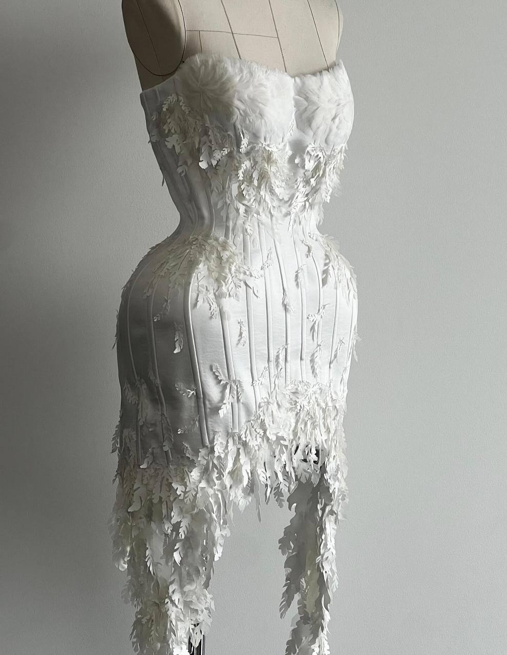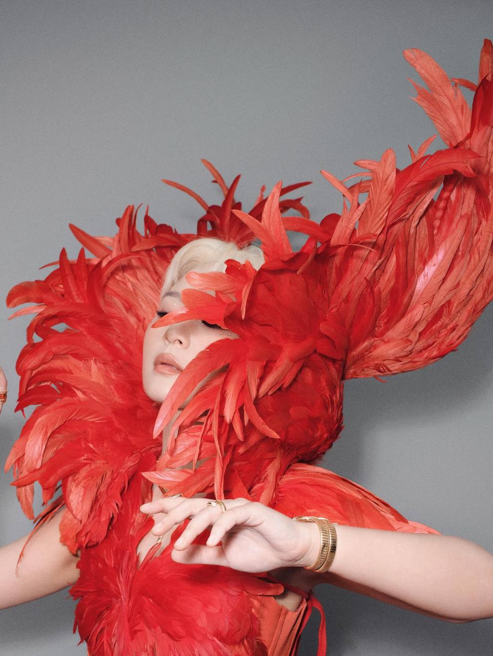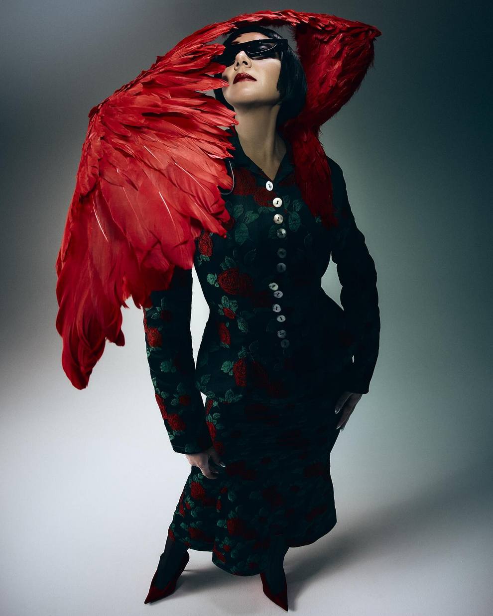 Migmoon’s fashion portfolio frequently blurs the line between haute couture and contemporary art. His visual identity is heavily defined by dramatic, surreal silhouettes, with his signature recurring motif being the swan and the extensive use of feathers. From intricate swan-shaped headpieces to elaborate custom wedding suits and masks, his work is characterized by its bold, romantic, and highly conceptual aesthetic.