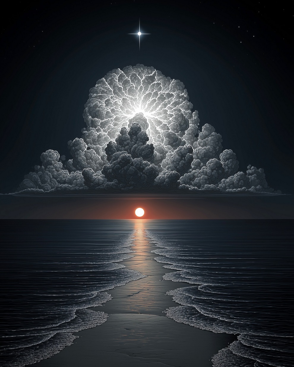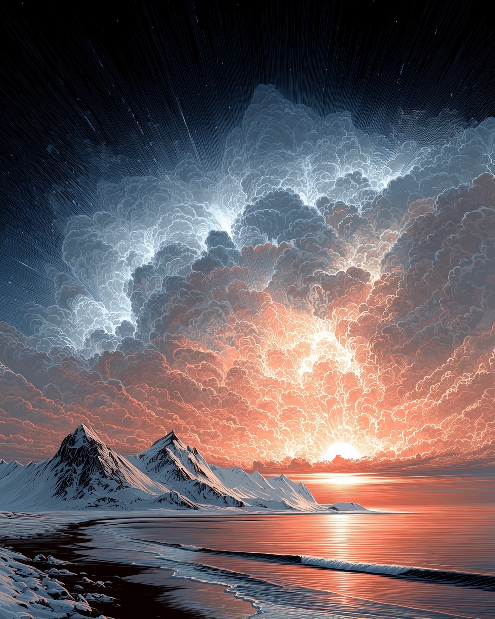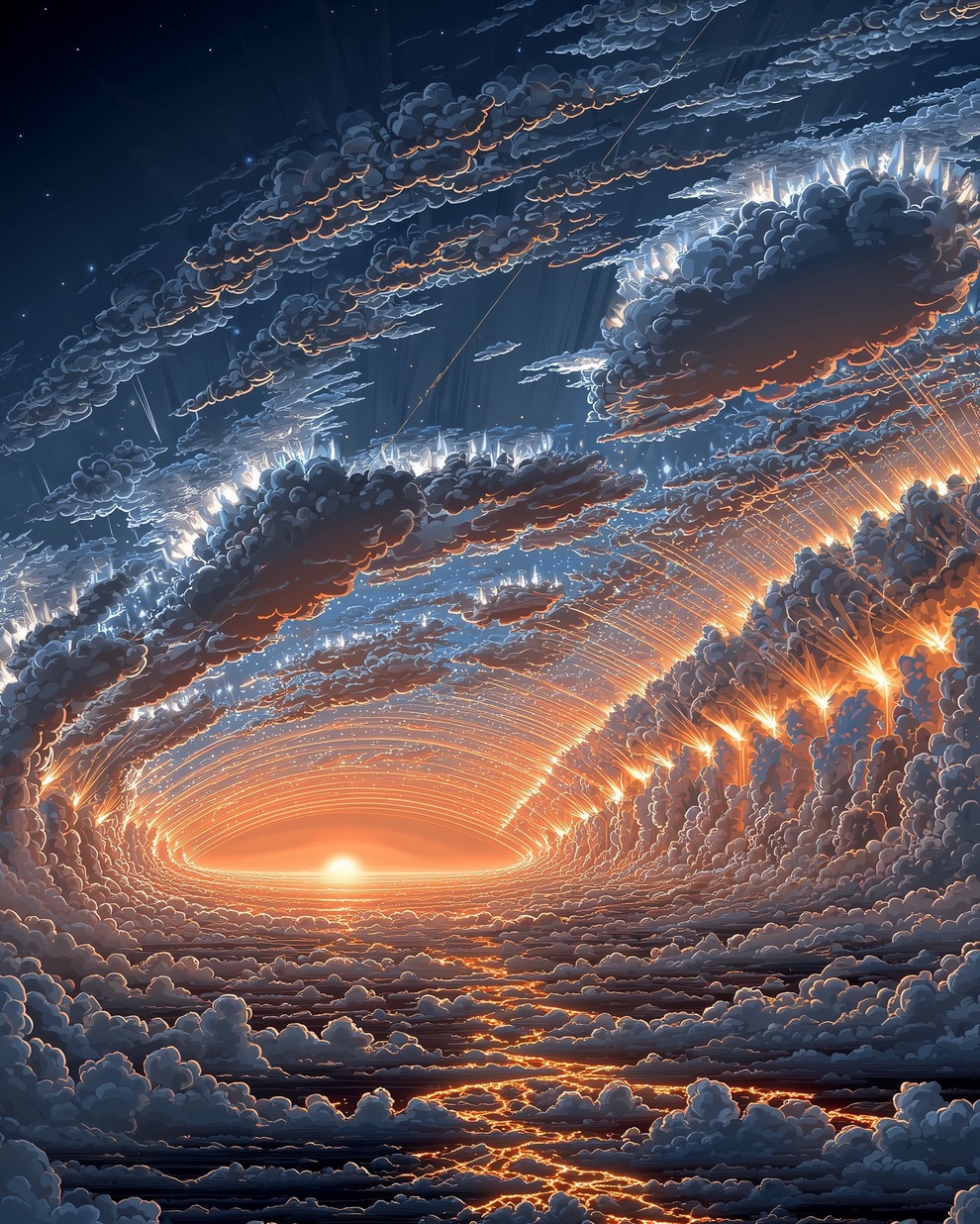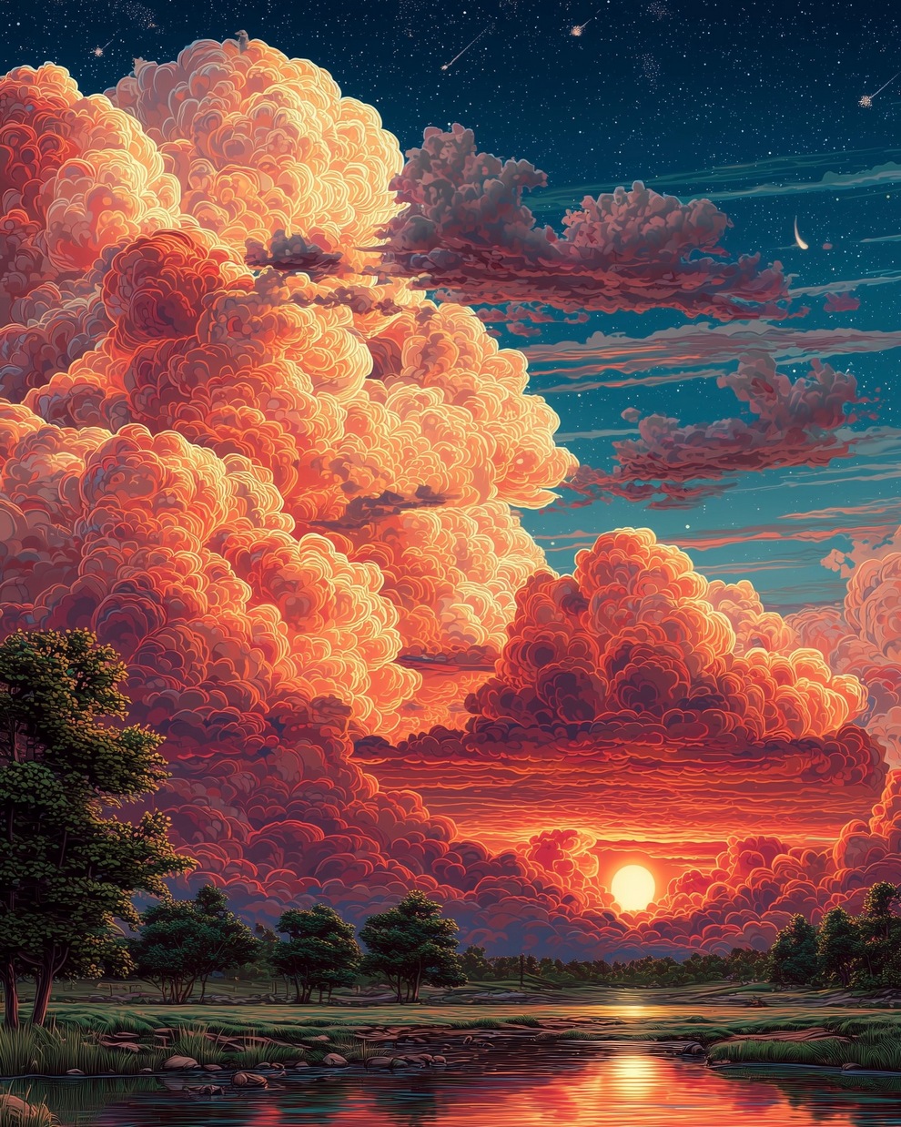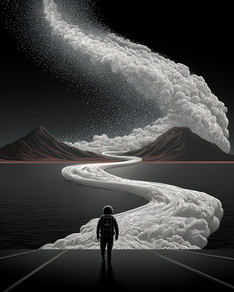 The portfolio is defined by its deep sense of calm, focusing on themes of tranquility, peaceful loneliness, and romantic nature. Using tools like Midjourney and AI video generators like Veo 3, the artist creates hyper-realistic and stylized landscapes featuring glowing horizons, massive clouds, starlit skies, and solitary figures. He frequently pairs his melancholic, cinematic imagery with highly poetic captions, reflecting on human emotions, passion, and the transient beauty of life.