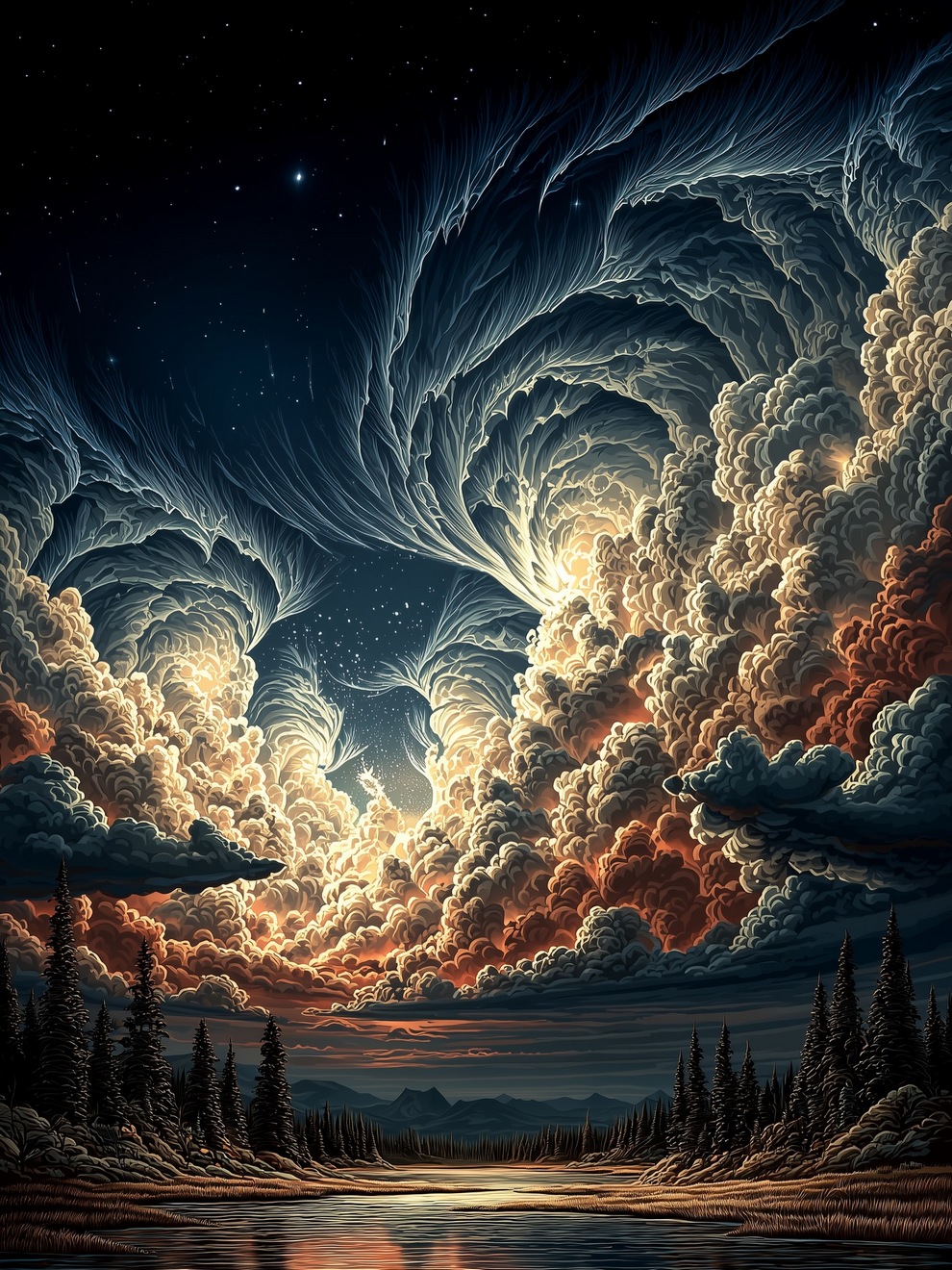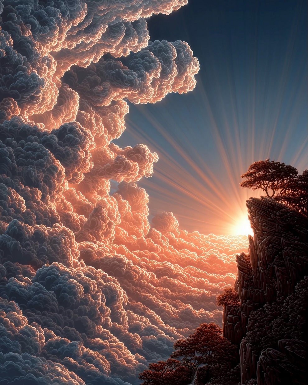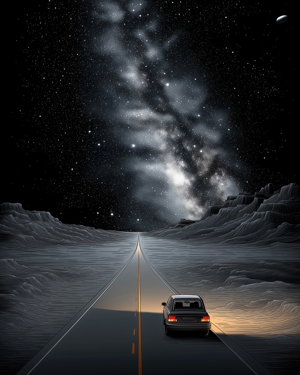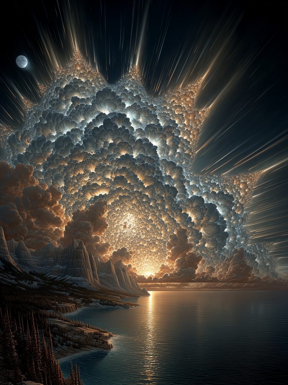The portfolio is defined by its deep sense of calm, focusing on themes of tranquility, peaceful loneliness, and romantic nature. Using tools like Midjourney and AI video generators like Veo 3, the artist creates hyper-realistic and stylized landscapes featuring glowing horizons, massive clouds, starlit skies, and solitary figures. He frequently pairs his melancholic, cinematic imagery with highly poetic captions, reflecting on human emotions, passion, and the transient beauty of life.