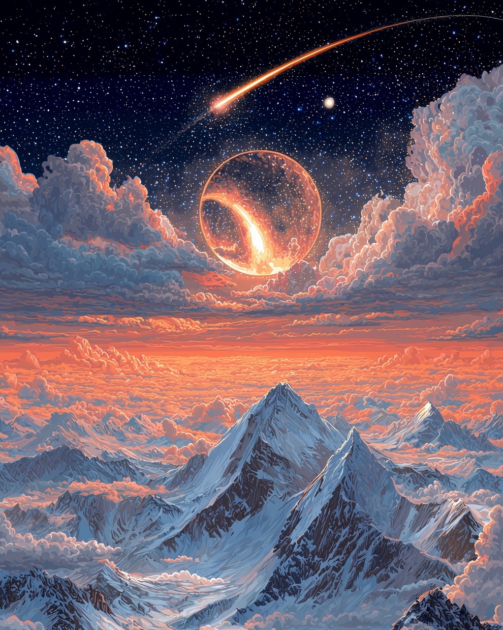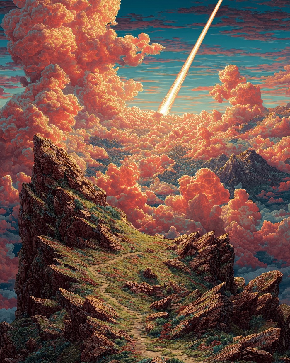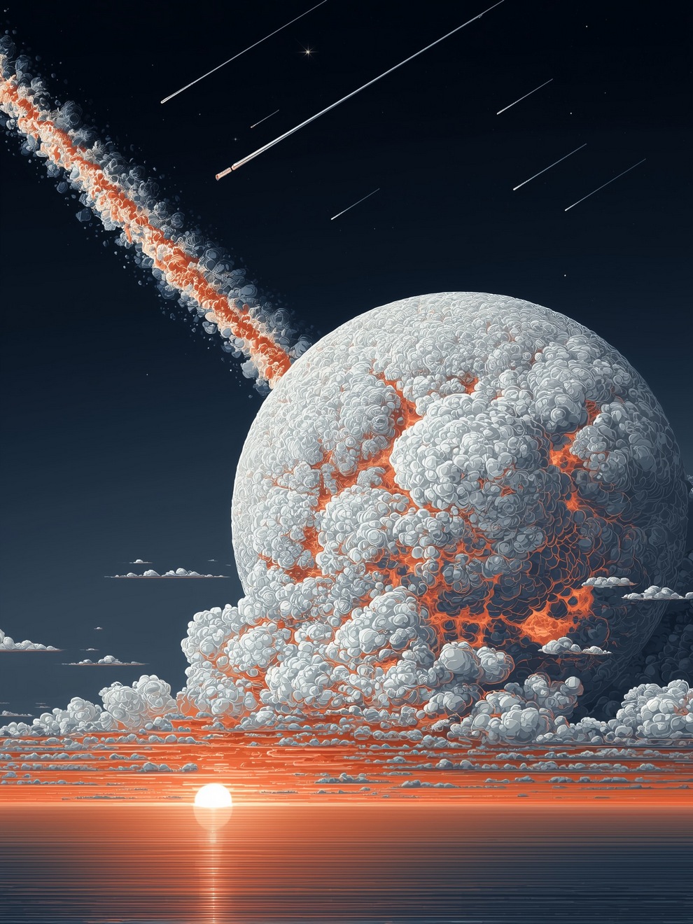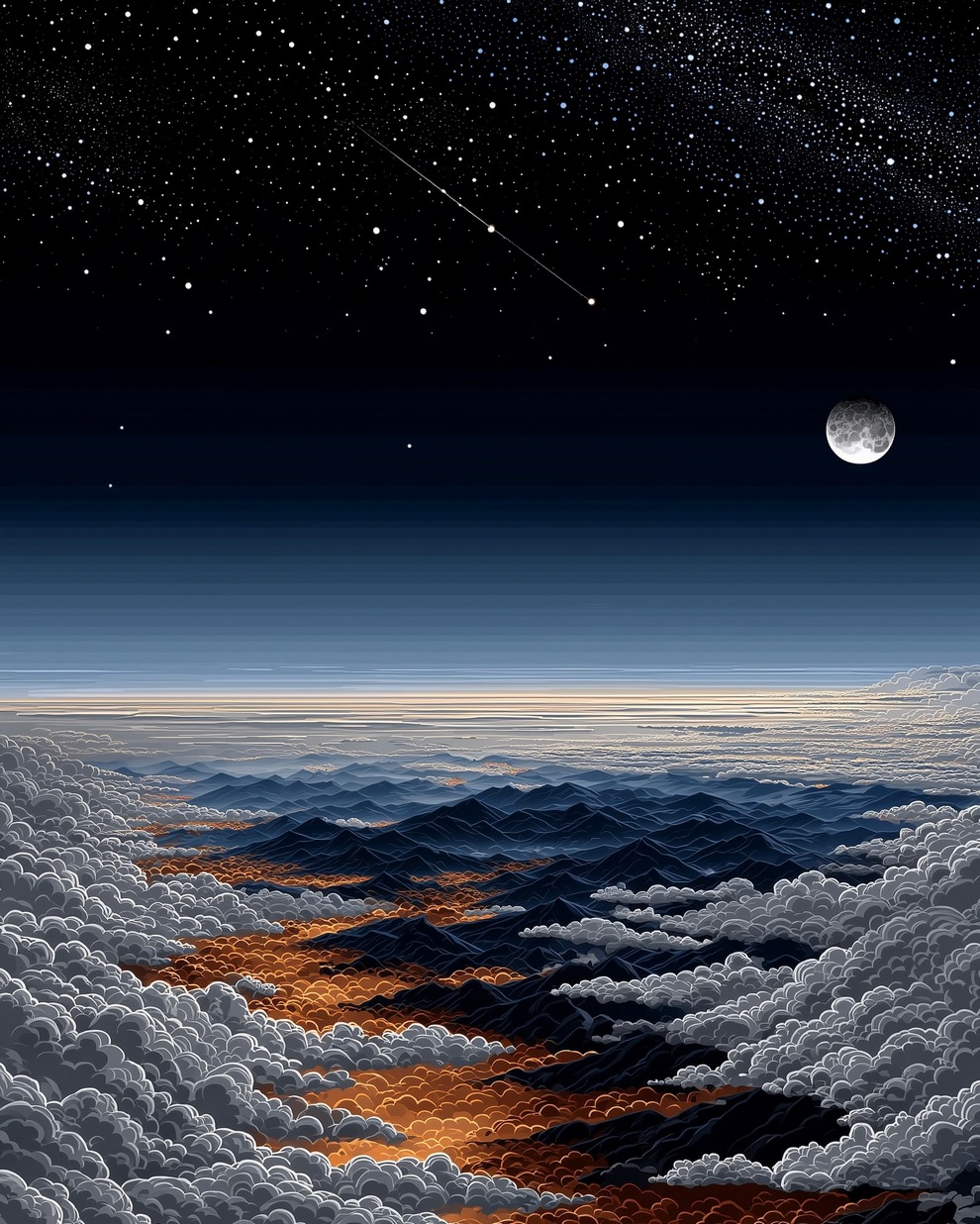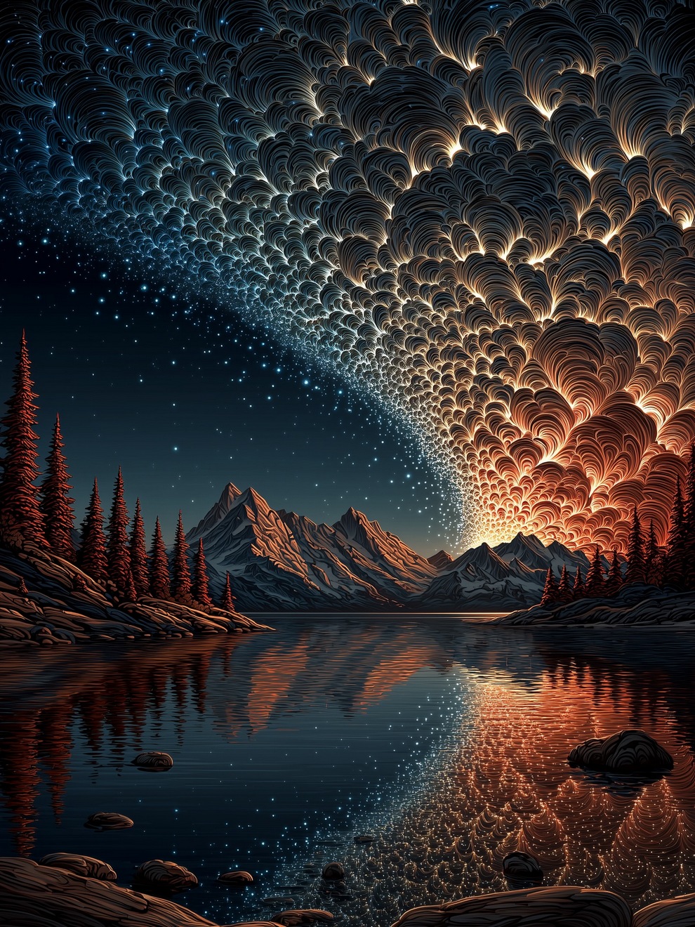 The portfolio is defined by its deep sense of calm, focusing on themes of tranquility, peaceful loneliness, and romantic nature. Using tools like Midjourney and AI video generators like Veo 3, the artist creates hyper-realistic and stylized landscapes featuring glowing horizons, massive clouds, starlit skies, and solitary figures. He frequently pairs his melancholic, cinematic imagery with highly poetic captions, reflecting on human emotions, passion, and the transient beauty of life.
