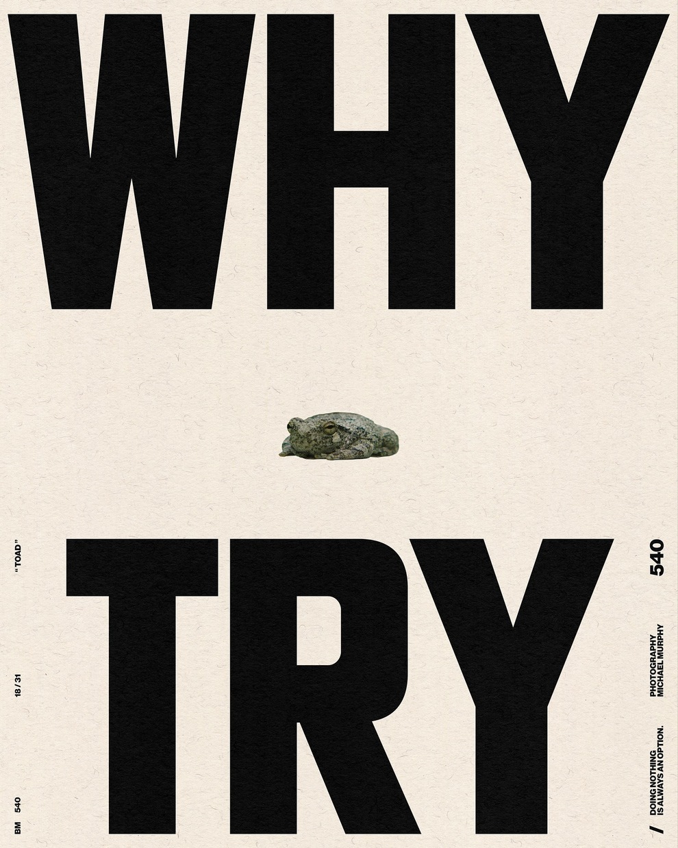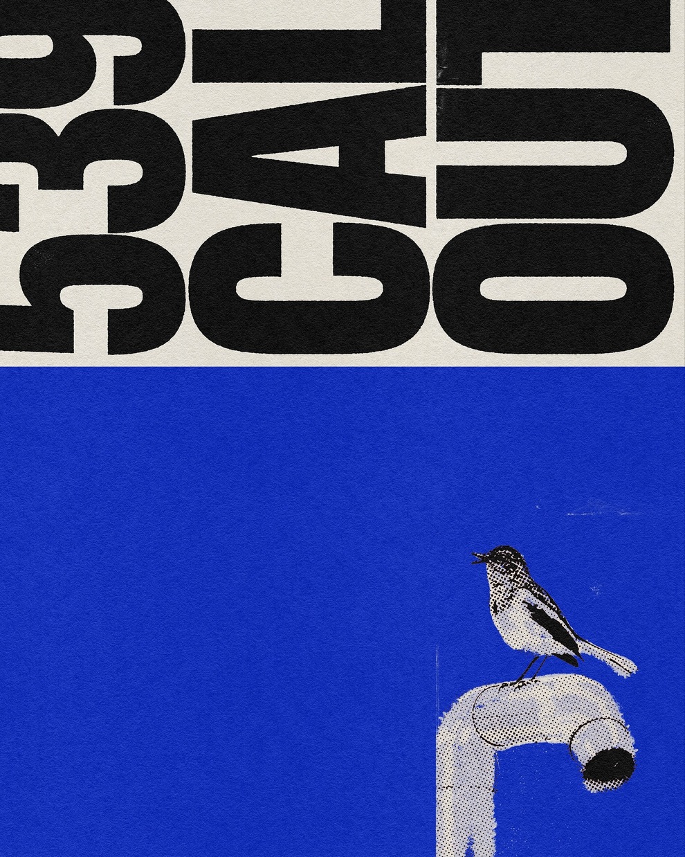 Mead’s aesthetic revolves around typography, layout, form, and emotion, transforming “ephemeral ideas” into striking, unexpected visuals that provoke thought and action. He embraces “everything’s been done before” by pushing boundaries with seamless patterns, photographic lettering, and experimental compositions—often digital via Adobe Suite, with aspirations for physical media like paints and photocopiers.