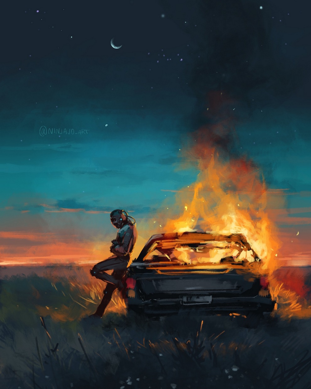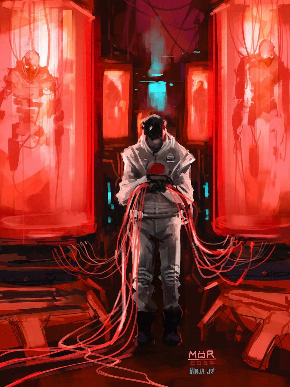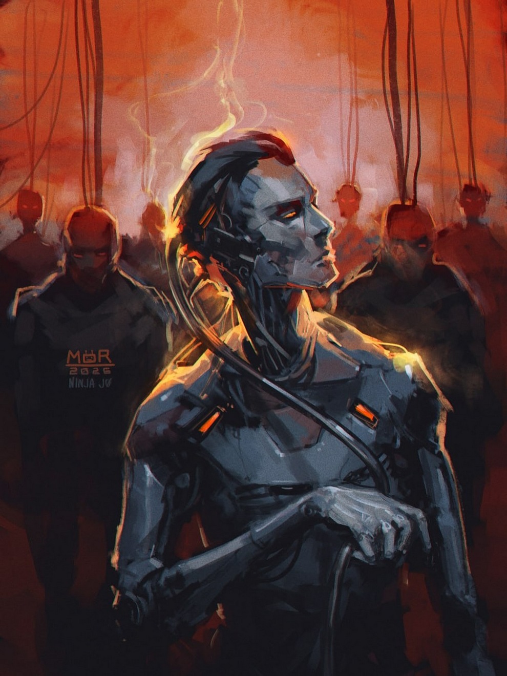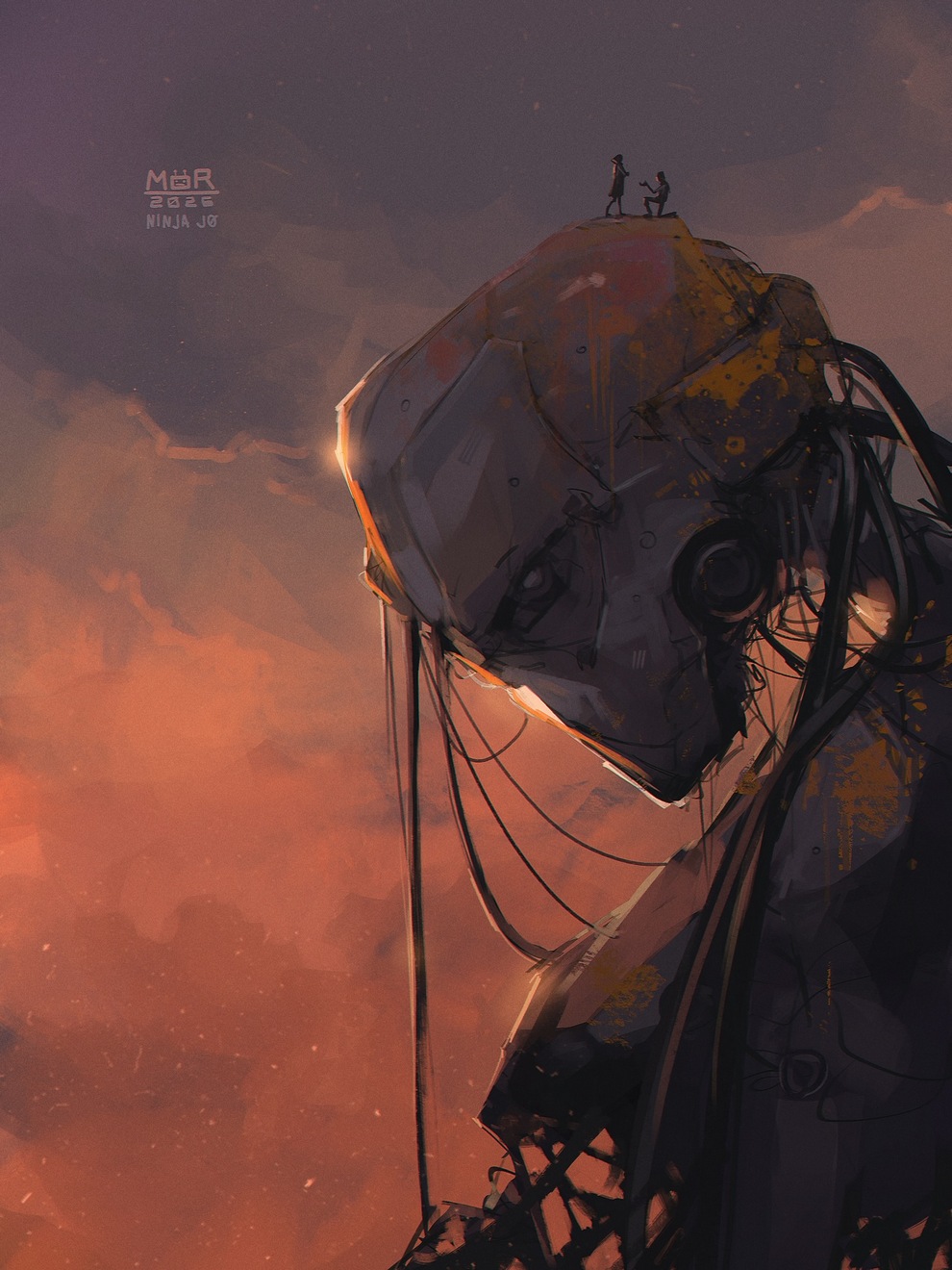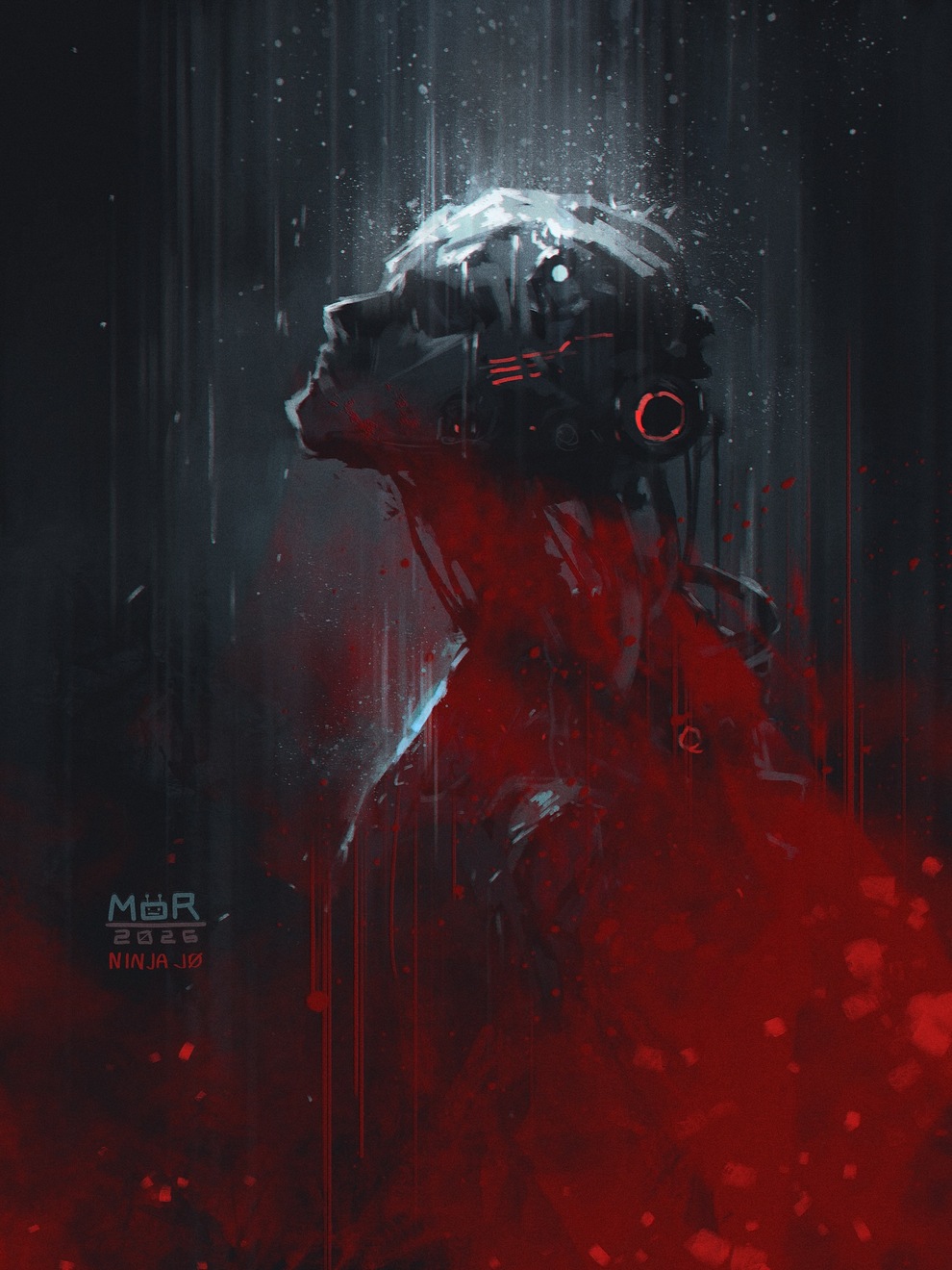 Her illustrations frequently explore futuristic sci-fi environments, melancholic robotic characters, and striking portrait studies defined by intense lighting and deep, rich colors. She often shares her creative process on Instagram Reels, showing how she transforms “light drafts into something darker” through digital painting. While she is celebrated for her polished commercial work, she also creates deeply emotive personal pieces—such as illustrations dealing with depression and isolation.