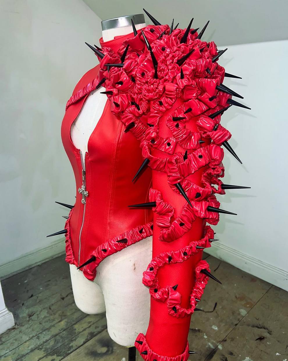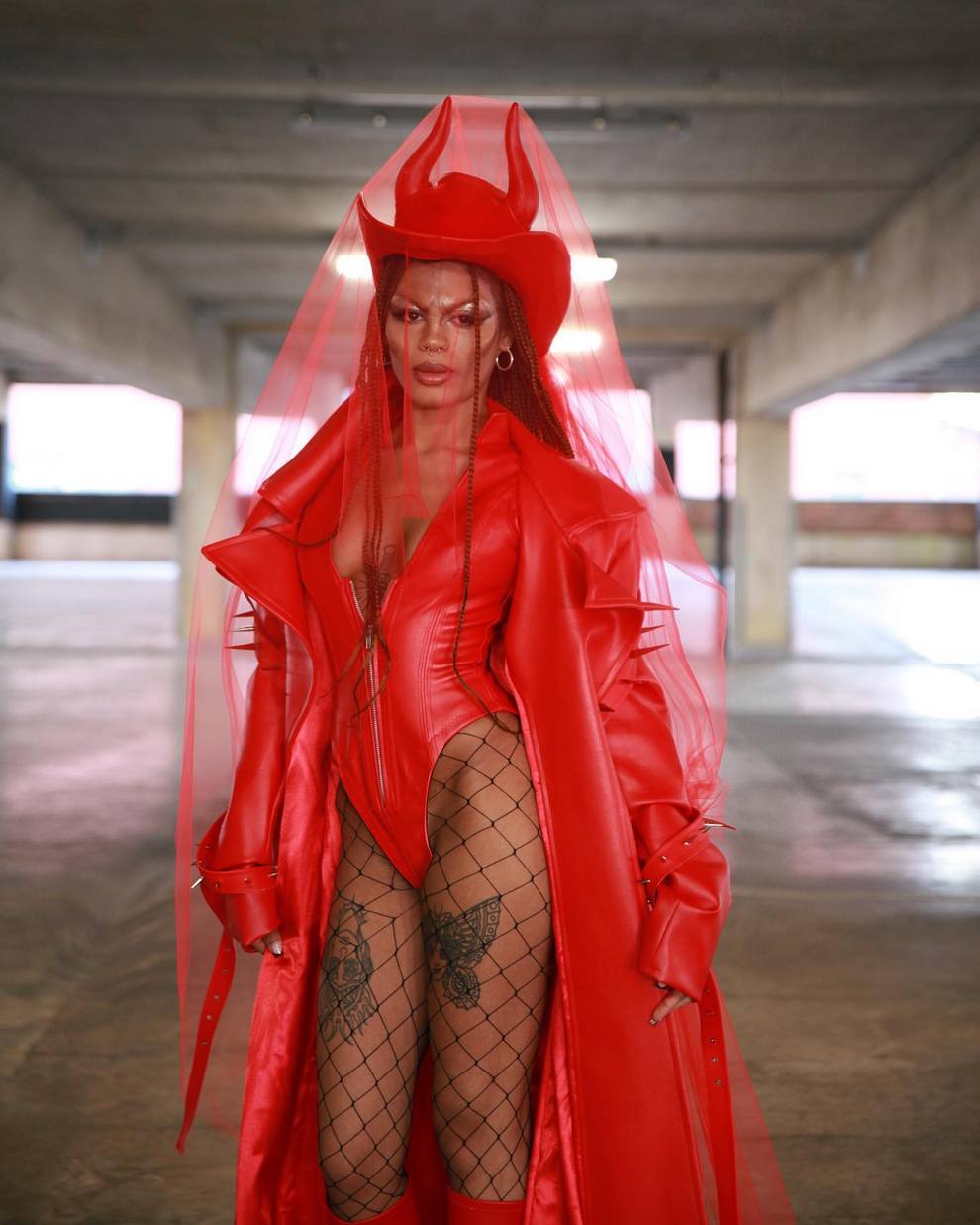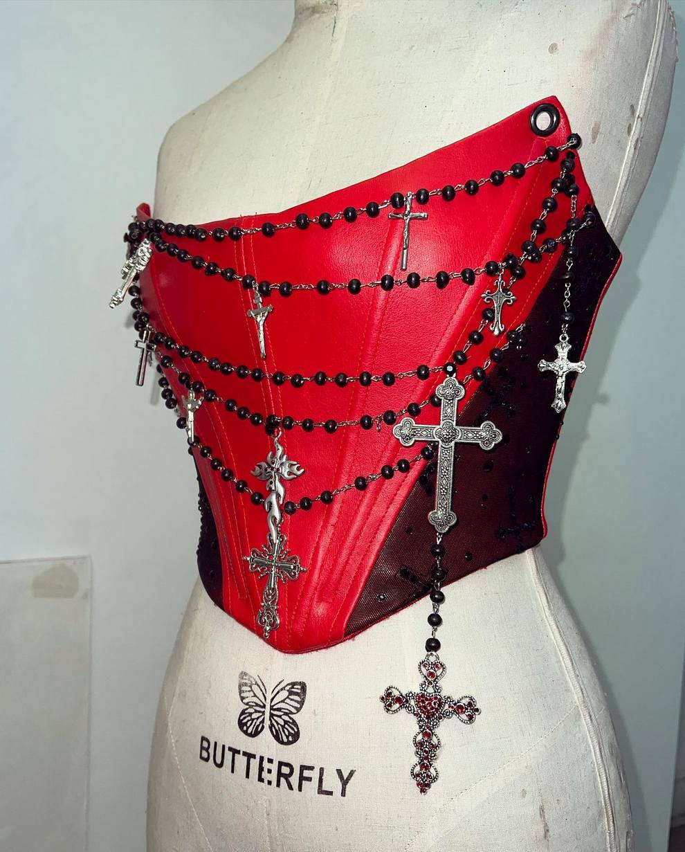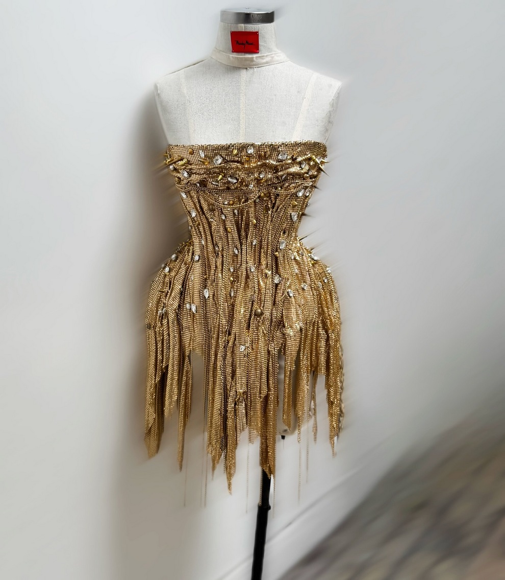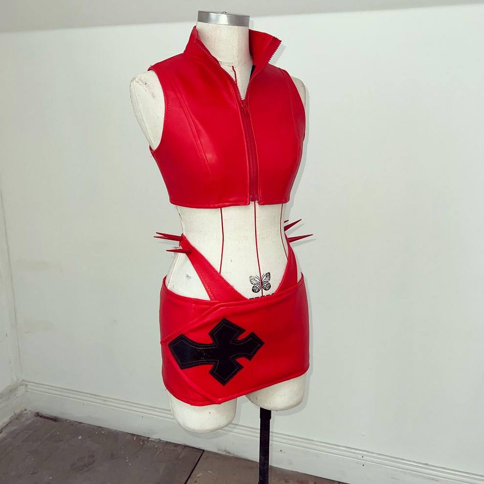 Marc’s aesthetic blends high-fashion drama with DIY punk energy: feathered bodysuits, PVC skull motifs, venom patchwork, and horror-film lewks. He creates custom pieces for drag performers (e.g., Money Shot Mama hair looks) and fan projects like Lady Gaga’s “Mayhem” era costumes.