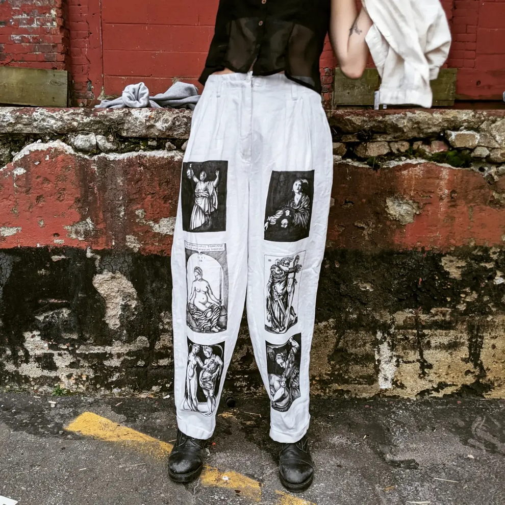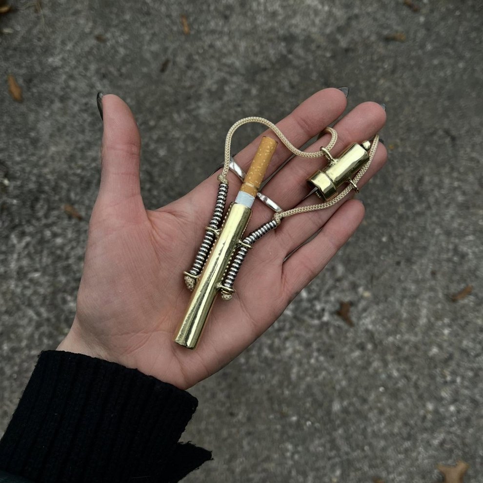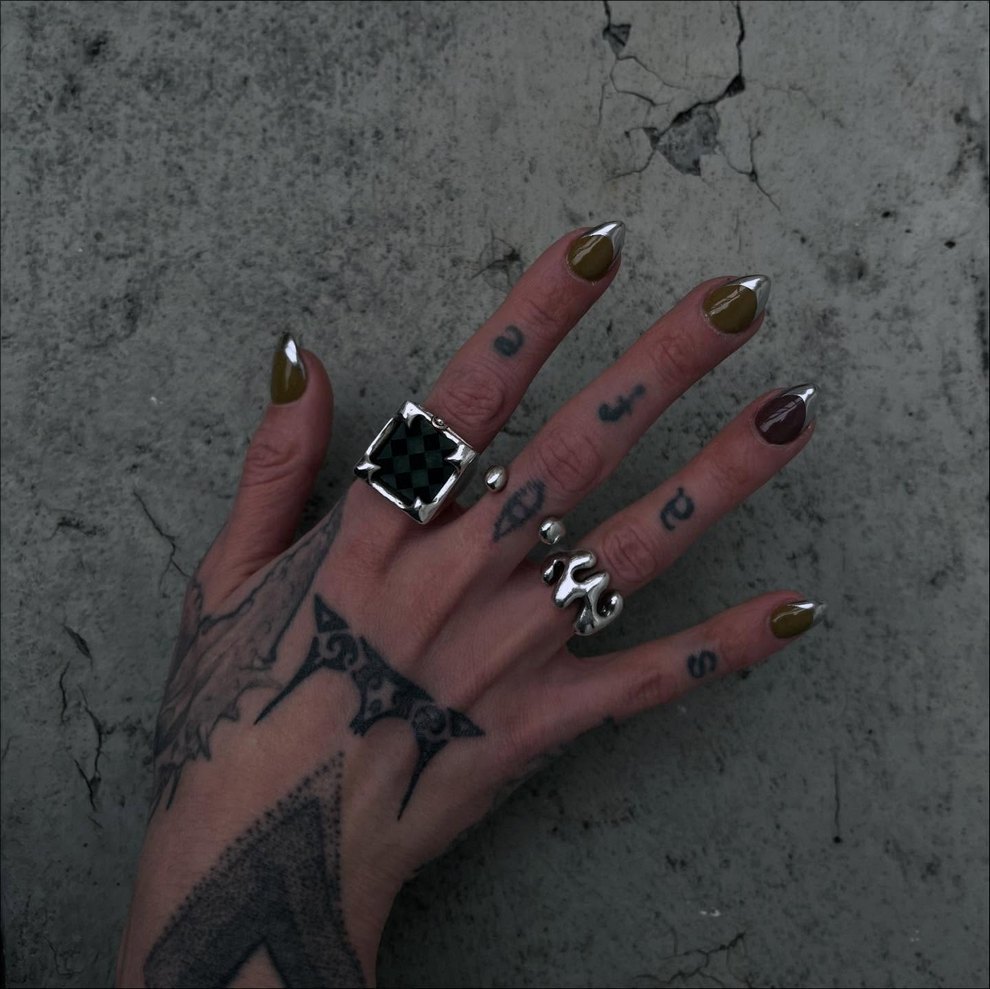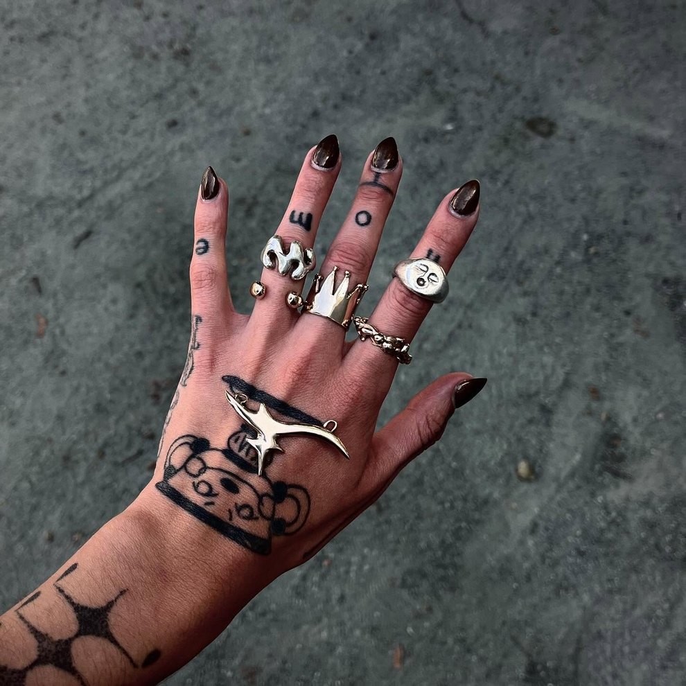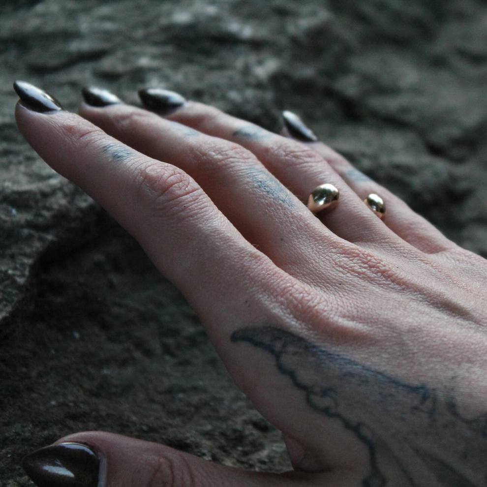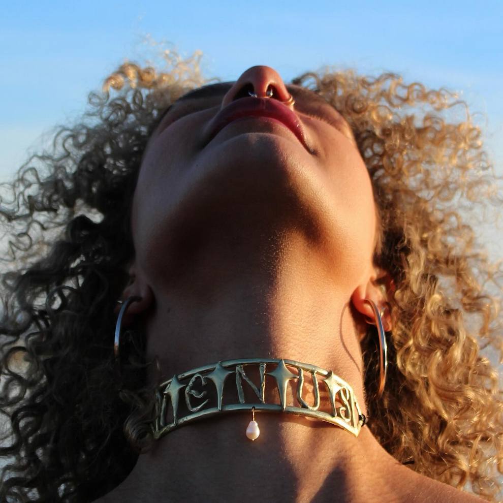 Her practice combines mystical, nature-centered themes with a rougher handmade aesthetic rooted in clothing, objects, and personal adornment. She has also become known for custom-painted garments and accessories, alongside tactile metal pieces that feel part fashion object, part sculpture, and part ritual artifact.