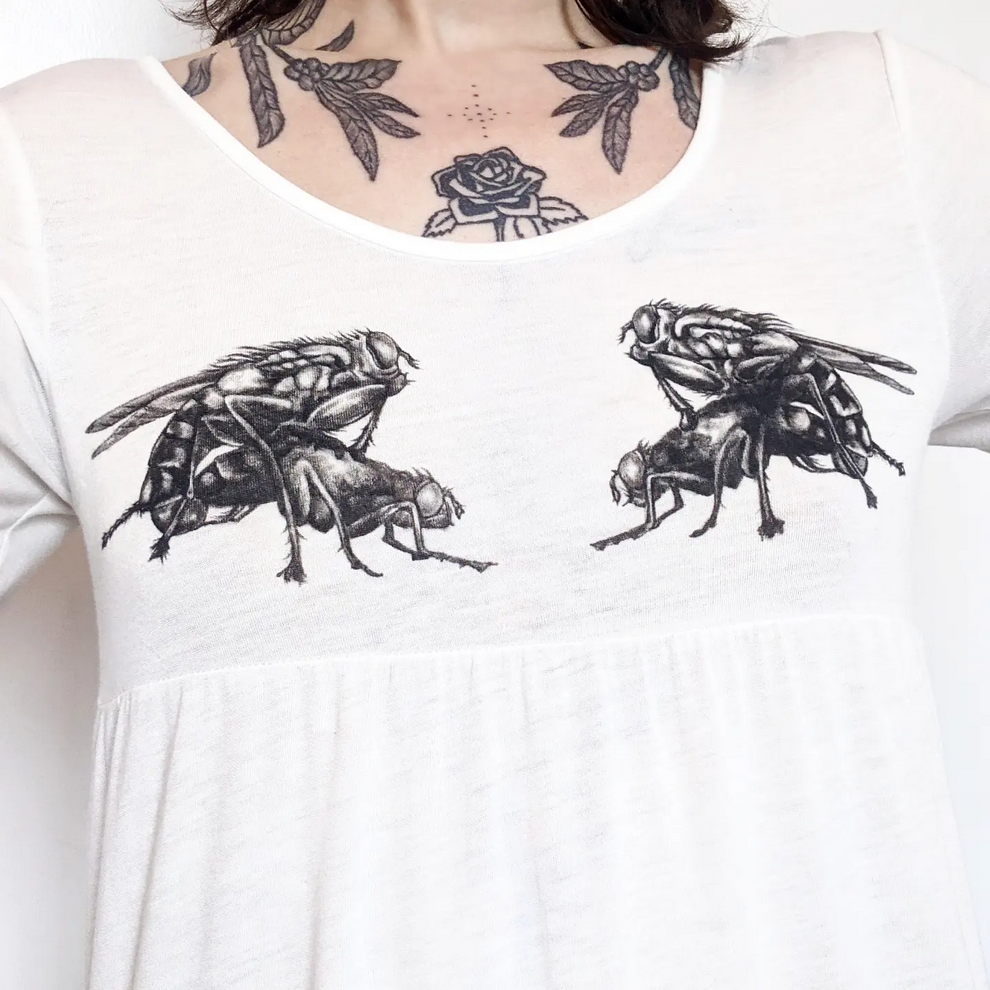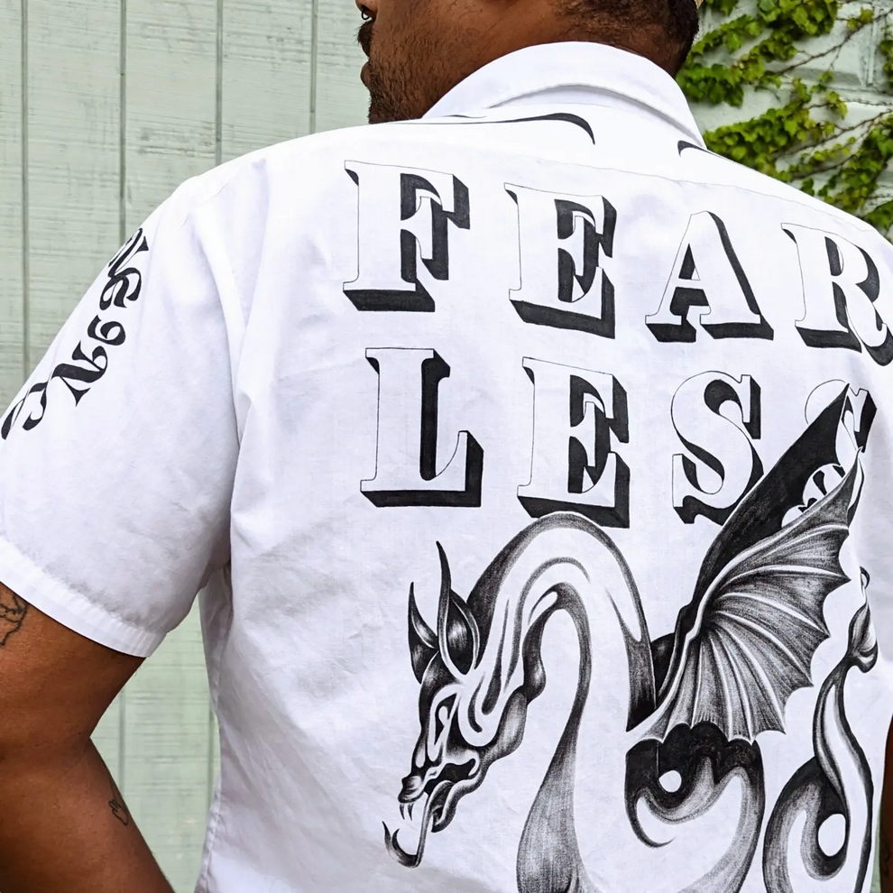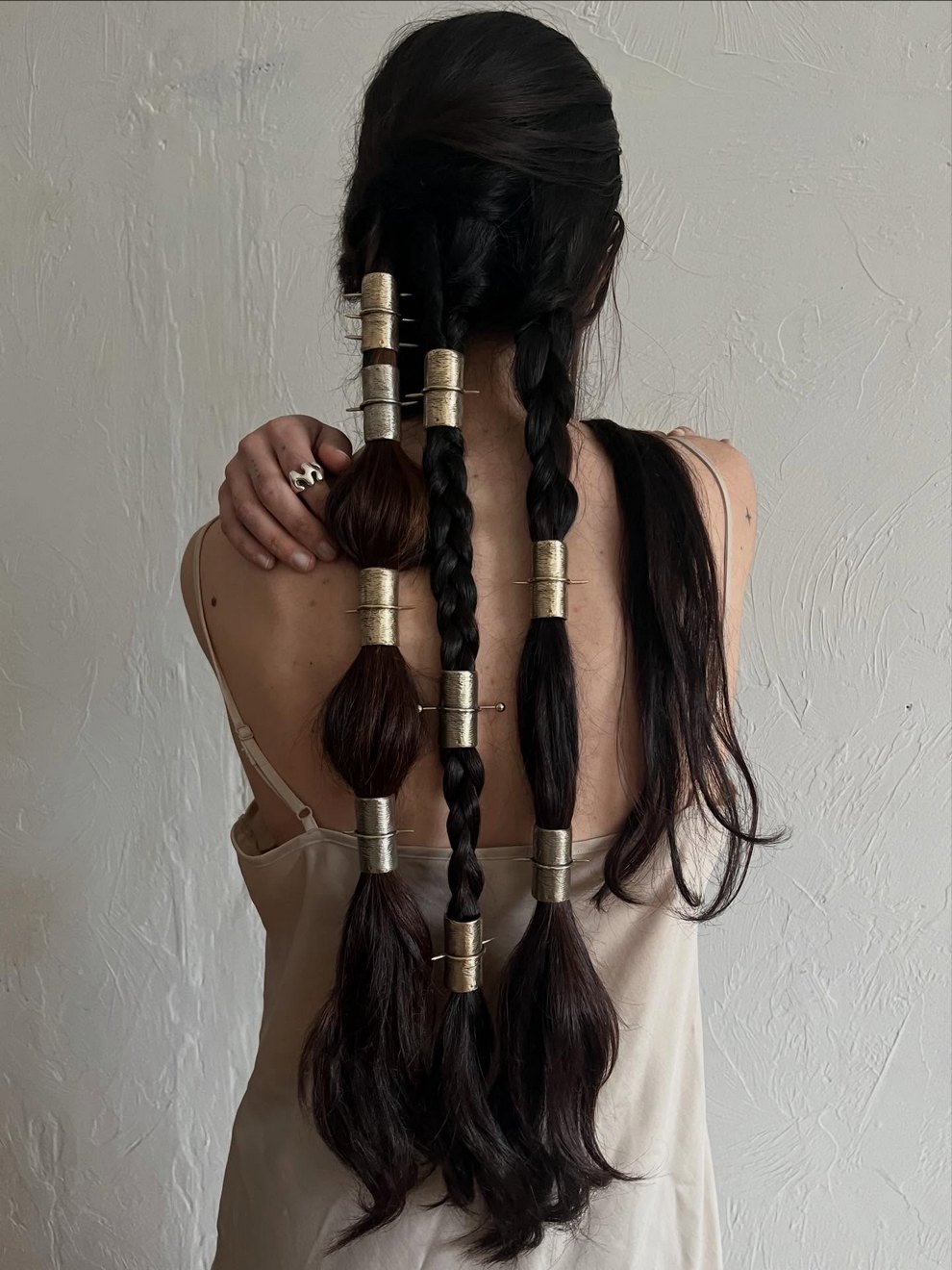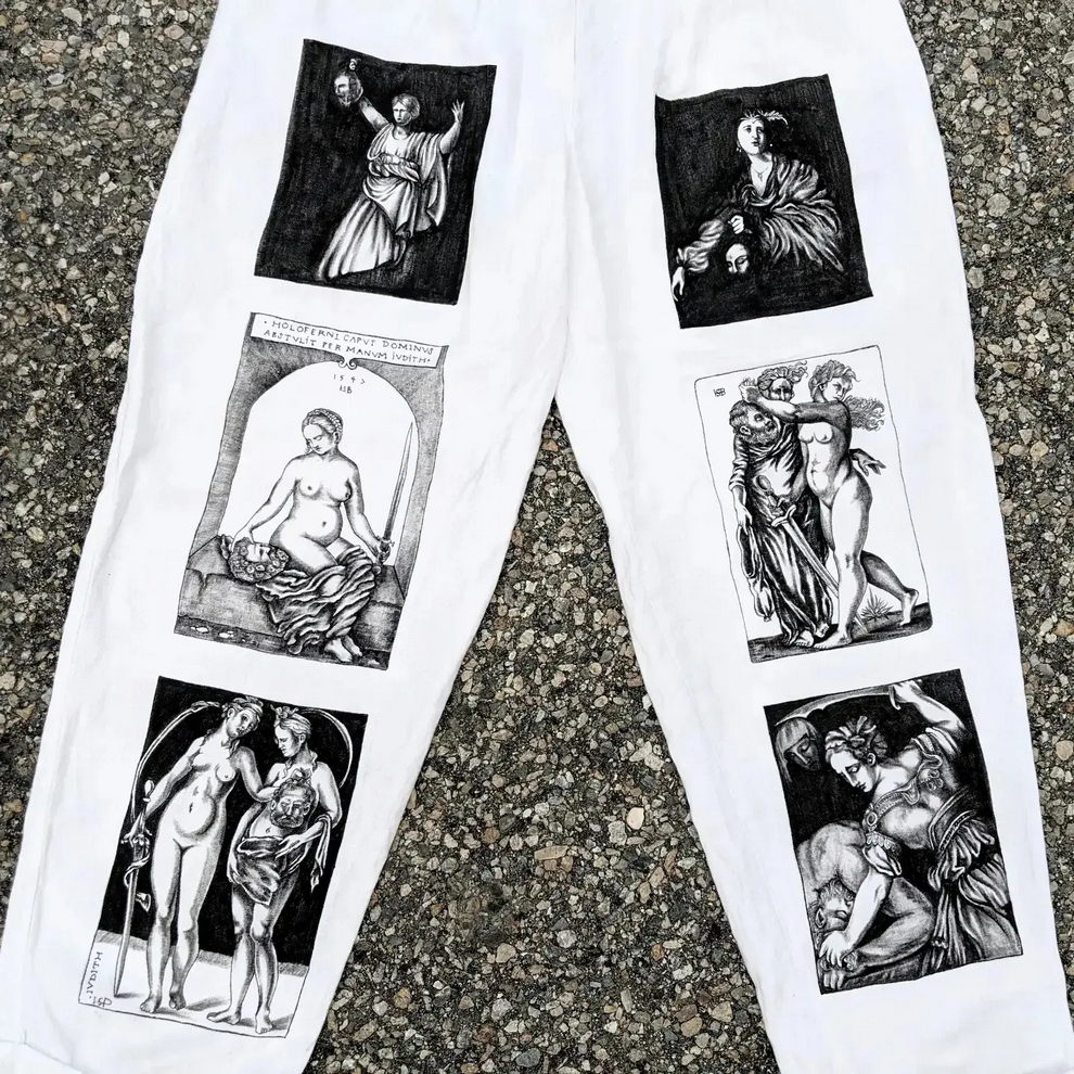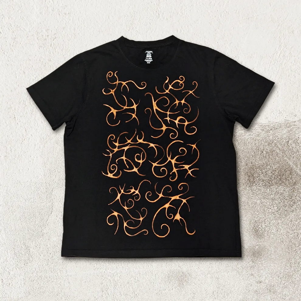 Her practice combines mystical, nature-centered themes with a rougher handmade aesthetic rooted in clothing, objects, and personal adornment. She has also become known for custom-painted garments and accessories, alongside tactile metal pieces that feel part fashion object, part sculpture, and part ritual artifact.