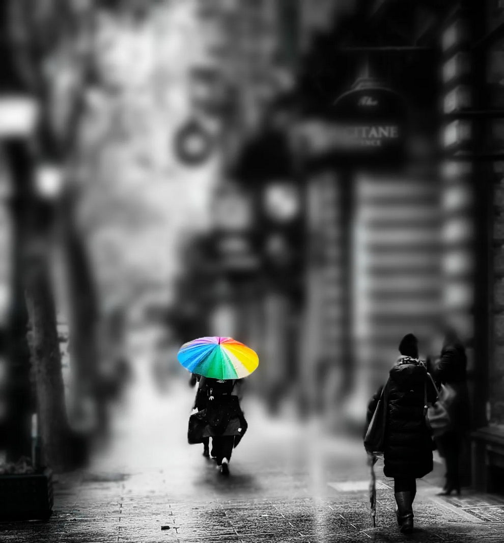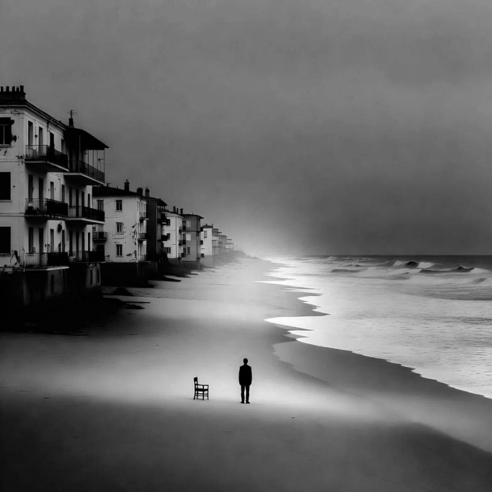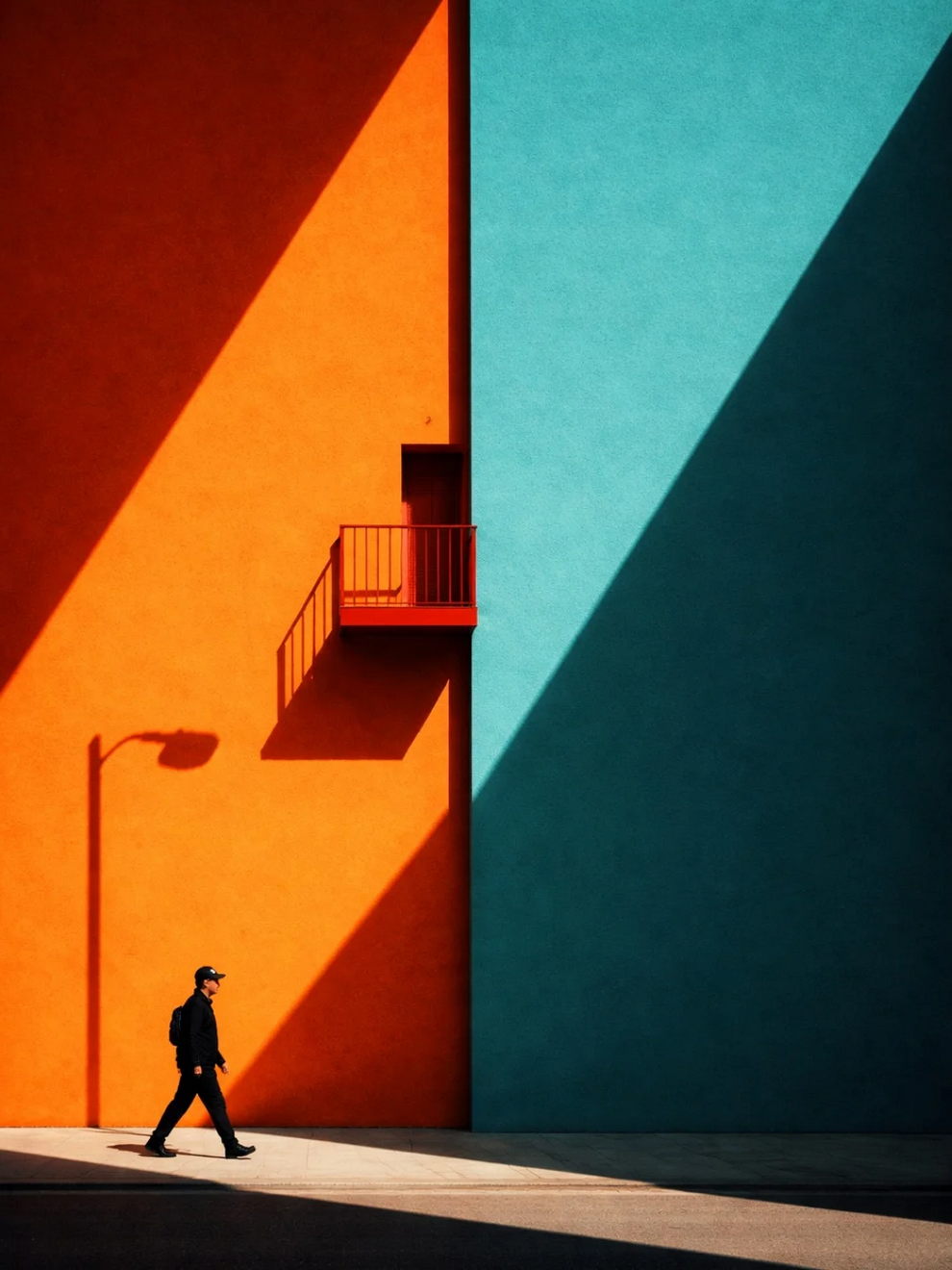 The hallmark of Andy’s photography is “conceptual minimalism”. He frequently employs stark architectural geometries, spirals, and deep shadows, heavily utilizing a specific color palette that leans toward stark black-and-white photography punctuated by bold, isolated flashes of red (such as a red umbrella or a red circle). His work turns chaotic street or coastal scenes into highly poetic, almost surreal graphic compositions by masterfully manipulating natural light (“shadow and light”), golden hour reflections, and negative space.
