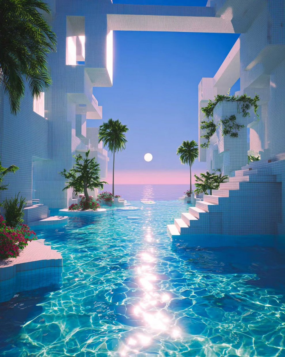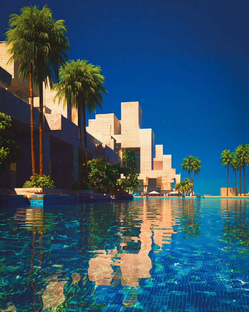 Lam blends architectural photography (Marina Bay Sands, Tokyo skyscrapers) with vaporwave edits, dreamstate compositions, and AI-generated art (“Crystal Cove,” “Lucid State,” “Quiet Happiness,” “Lucid Land”). His aesthetic fuses neon futurism, nostalgic grids, and urban melancholy.