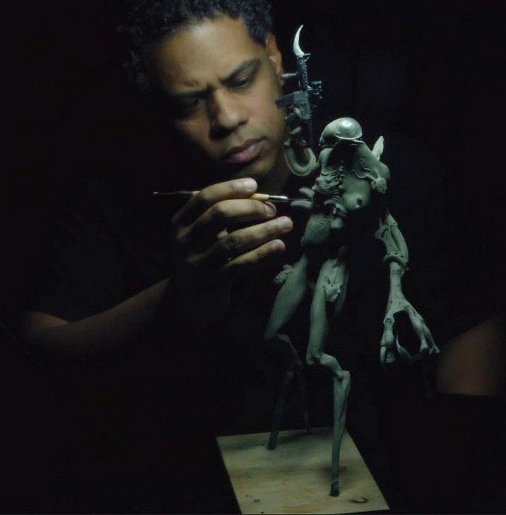 His portfolio spans concept art for major franchises, heavy metal magazine illustrations, and personal fine art like clay animal sculptures (“practicing fundamentals”). His Xentropa exhibition highlights groundbreaking independent work, with limited goods and prints. He teaches online classes (“Professional Doodling”) emphasizing no-pencil, no-thinking spontaneity. Influences include David Lynch, blending surrealism, anatomy, and narrative drive.